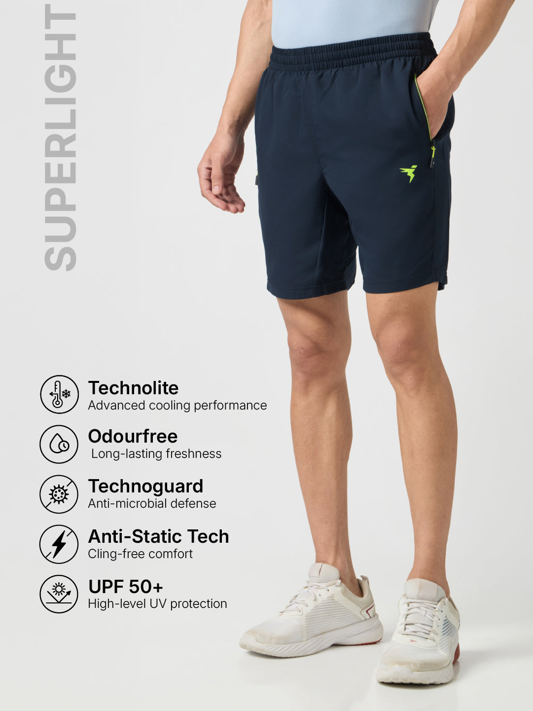 Men Solid Slim Fit Shorts with TECHNOLITE