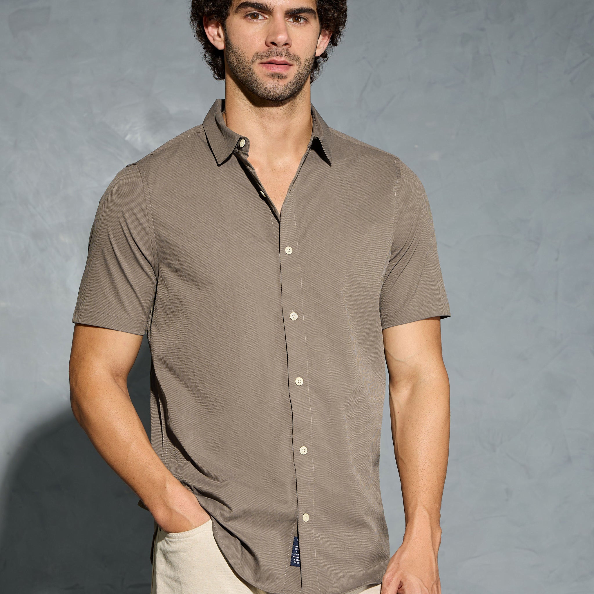 Men Solid Slim Fit Spread Collar Shirt with TS LYTRA