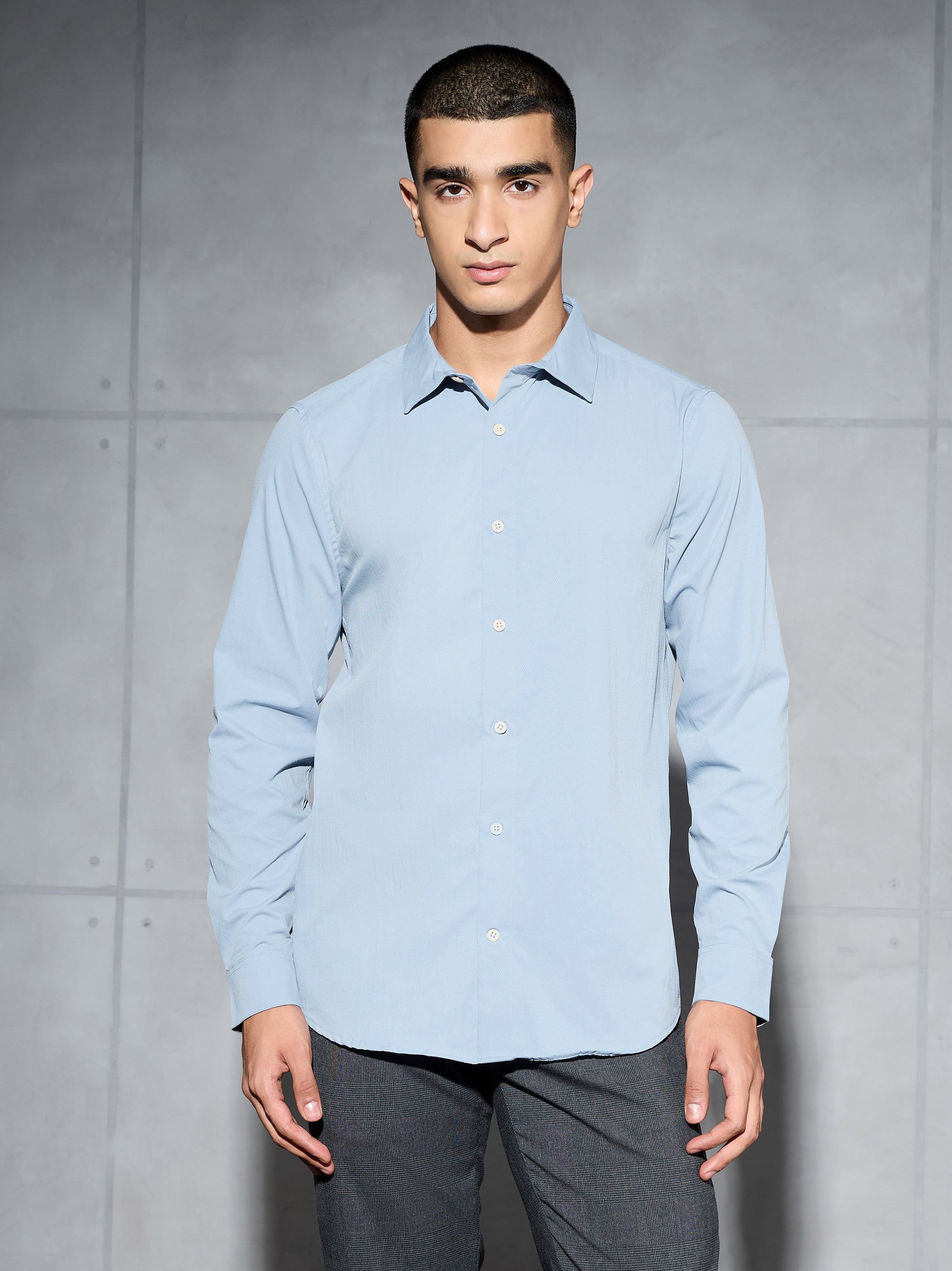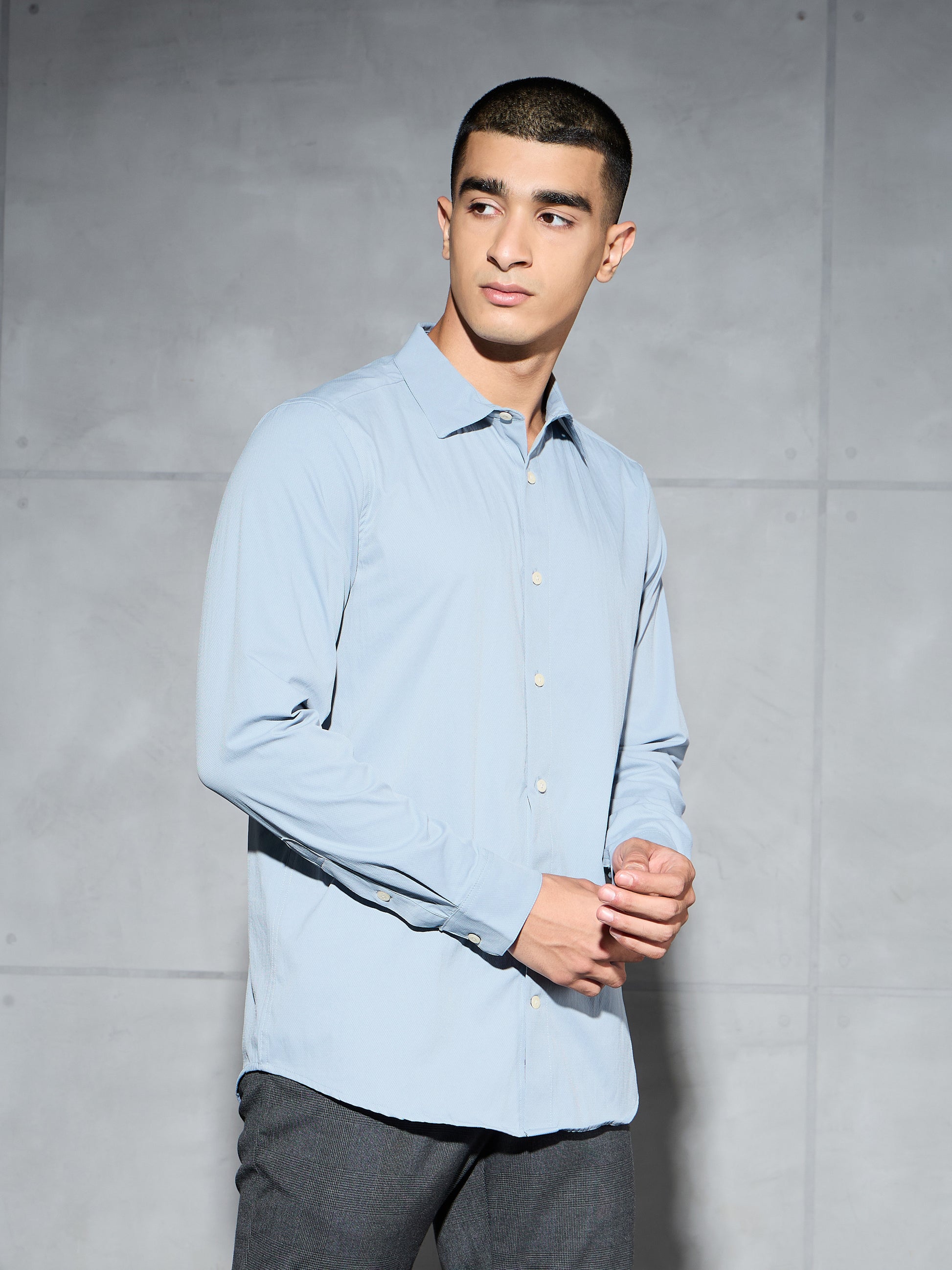 Offer Valid on a Minimum Cart Value of ₹999Men Solid Slim Fit Spread Collar Shirt with TS LYTRA