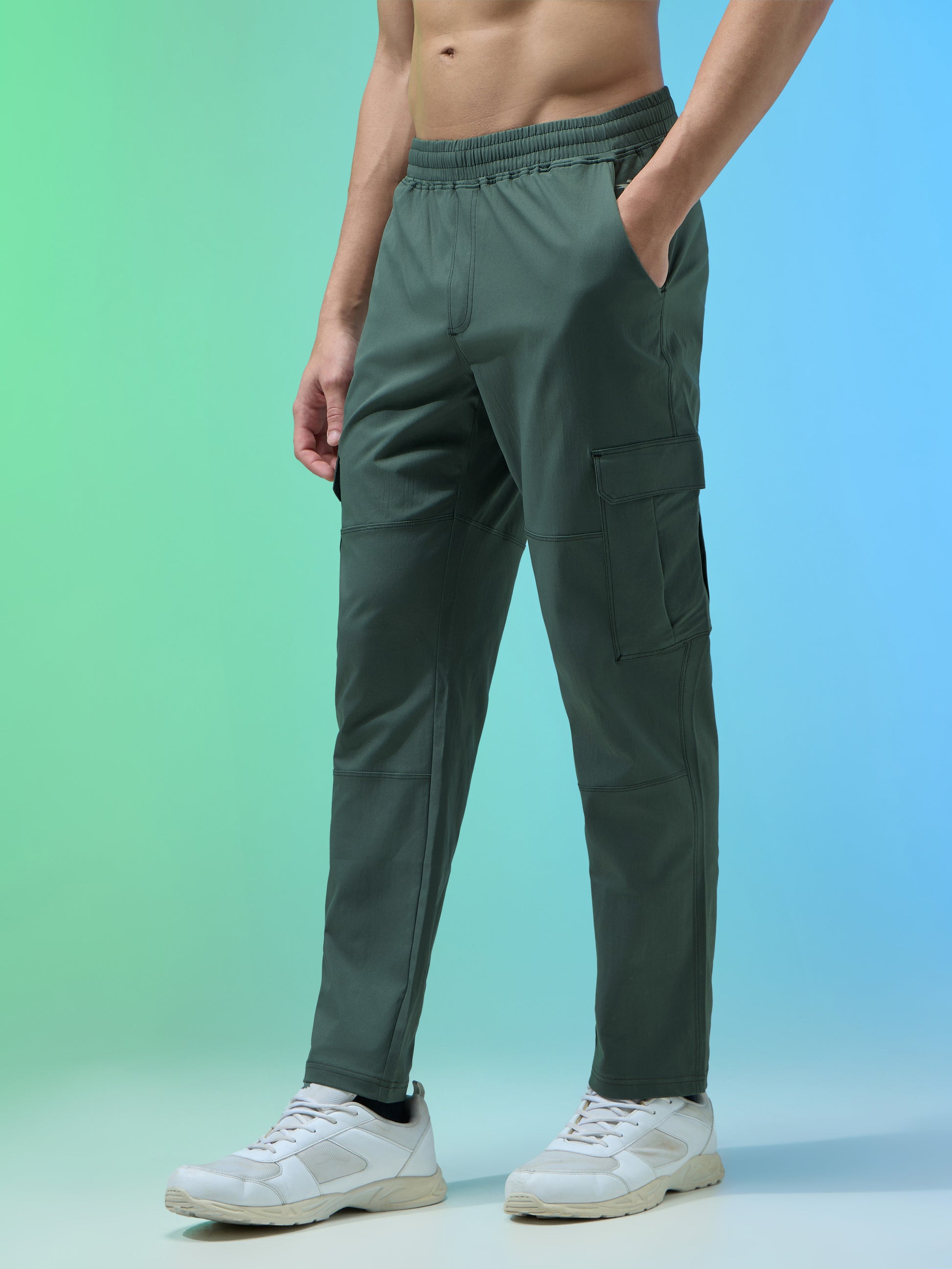 Offer Valid on a Minimum Cart Value of ₹999Men Solid Straight Fit Sports Cargo Trackpants with TS FLEXI
