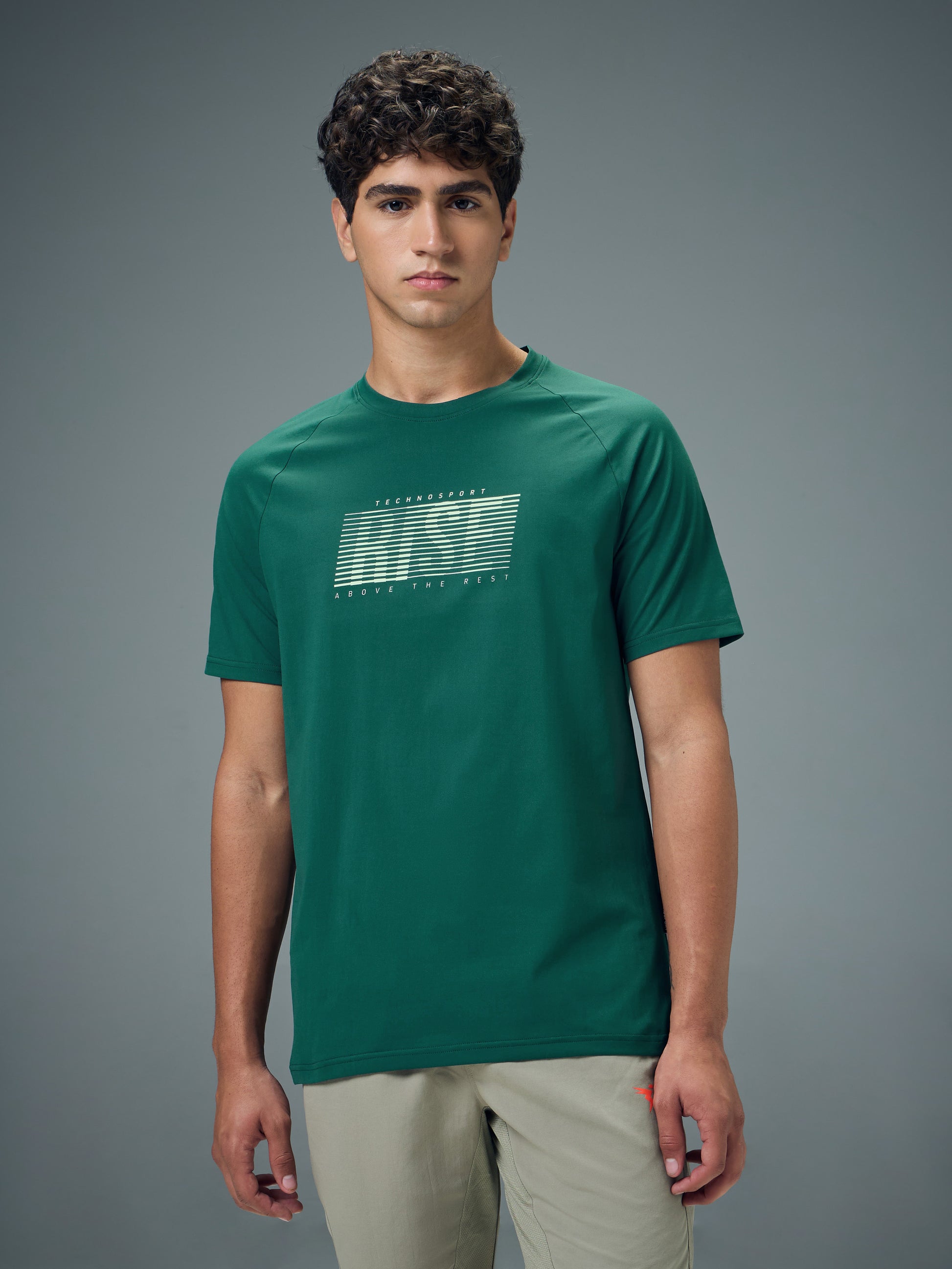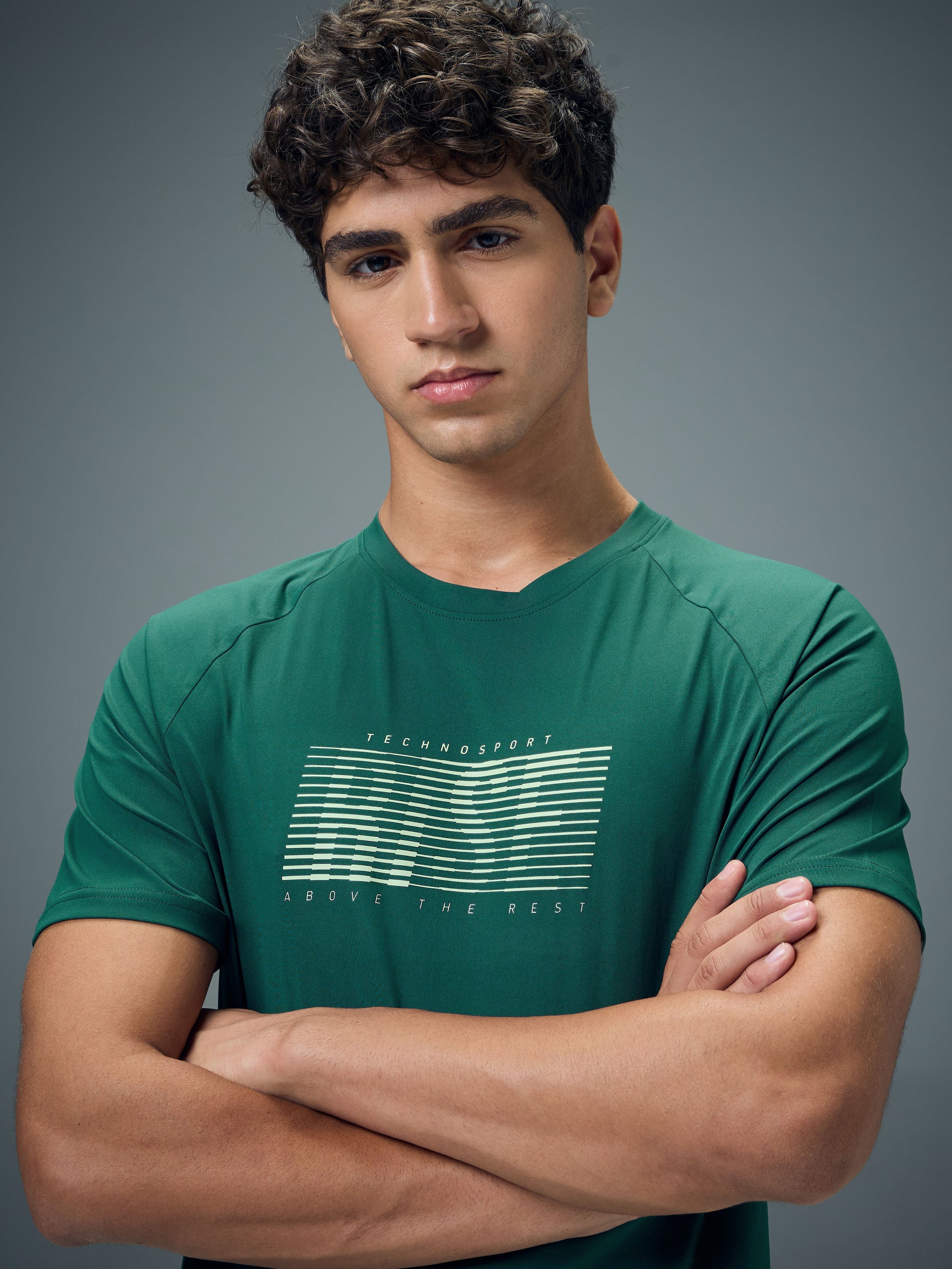Offer Valid on a Minimum Cart Value of ₹999Men Typography Printed Slim Fit Round Neck Sports T-shirt with COTFLEX