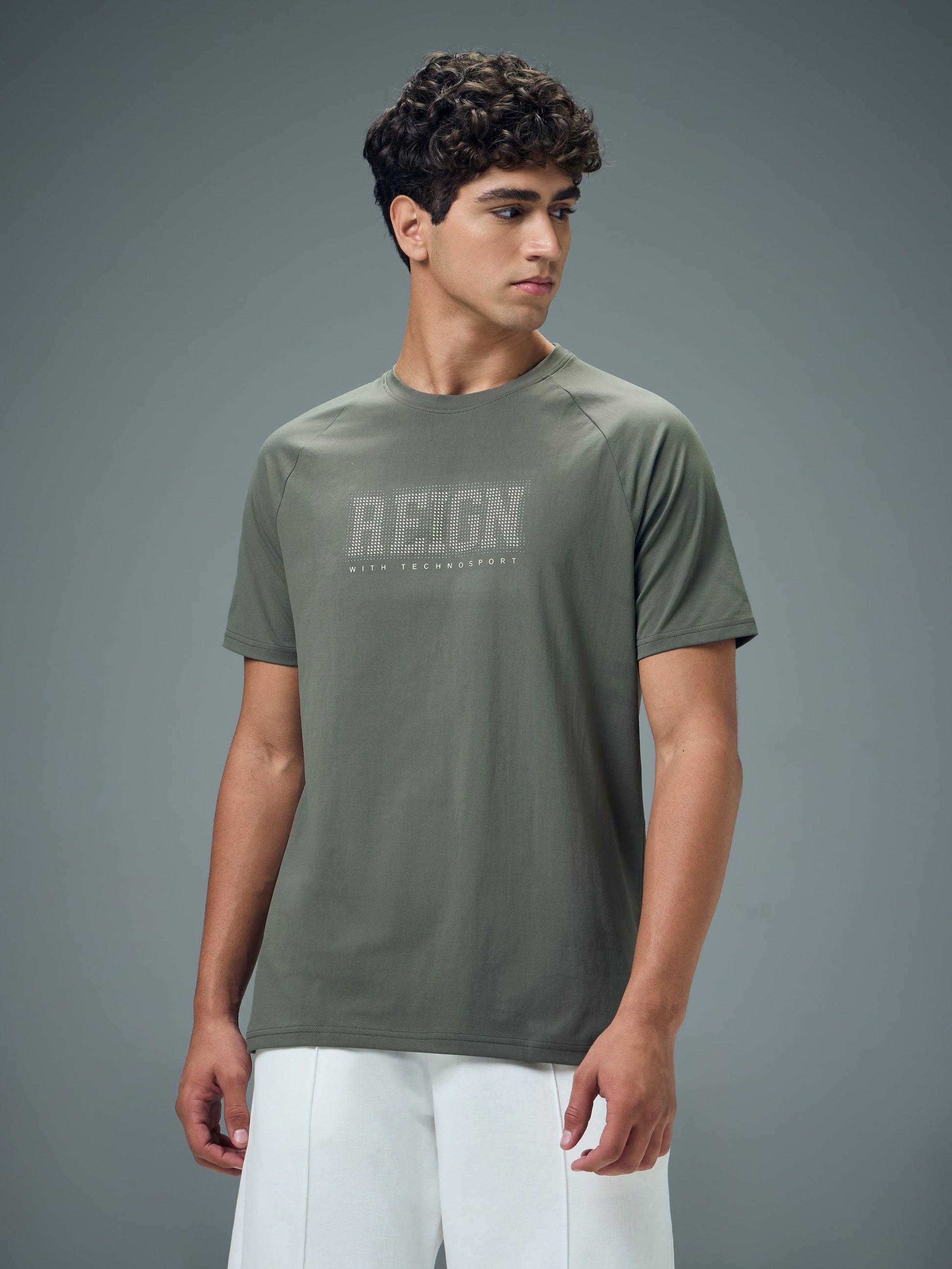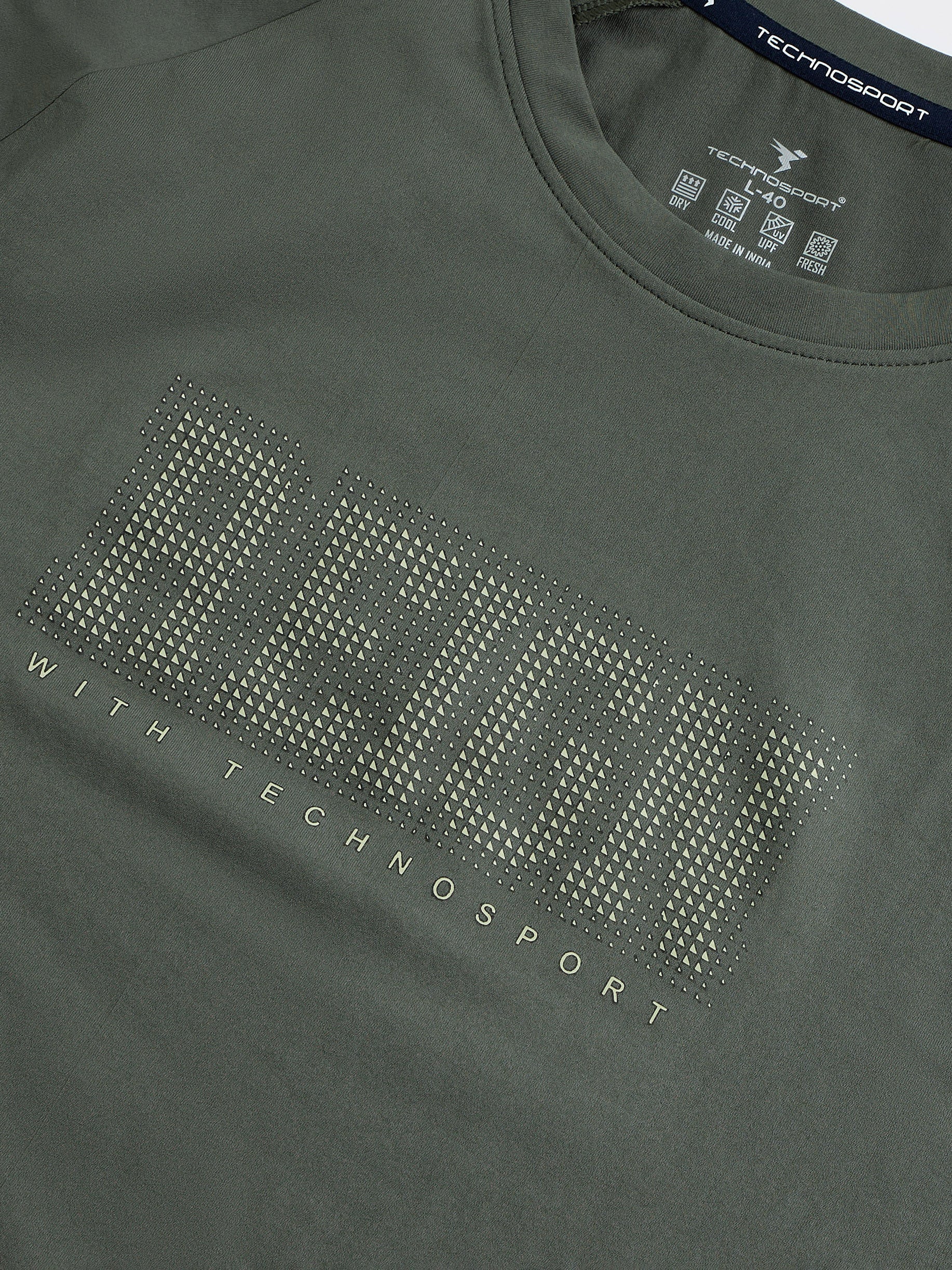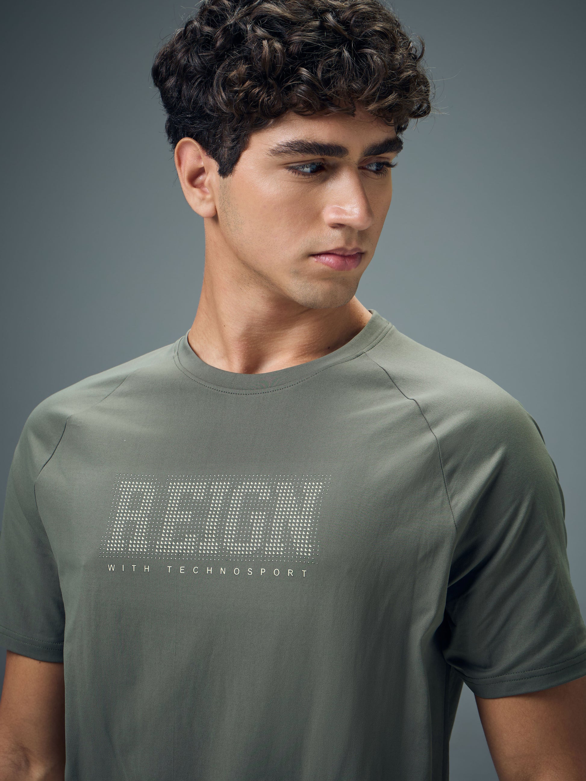 Men Typography Printed Slim Fit Round Neck Sports T-shirt with COTFLEX