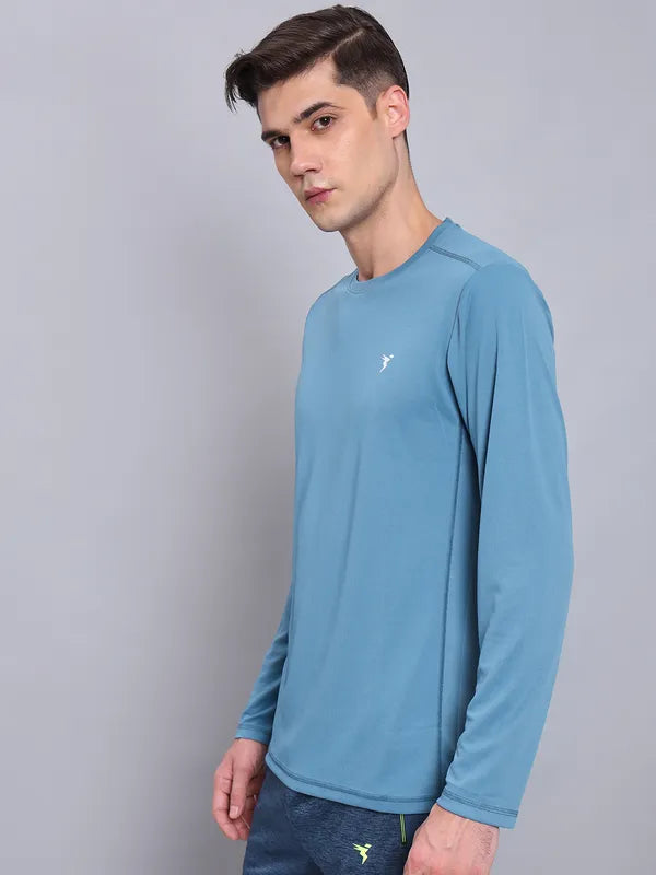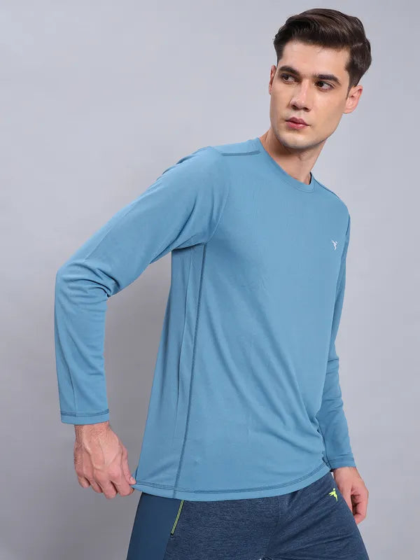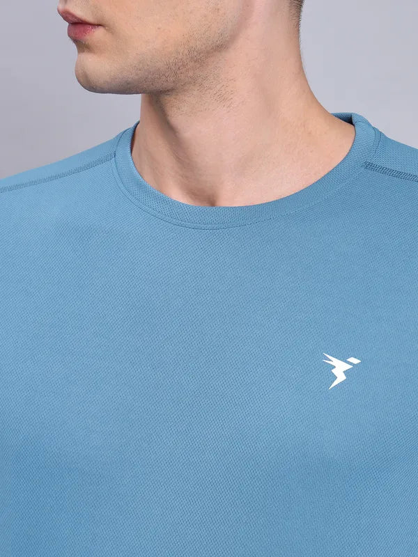Men Solid Slim Fit Crew Neck T-shirt with TECHNO COOL+