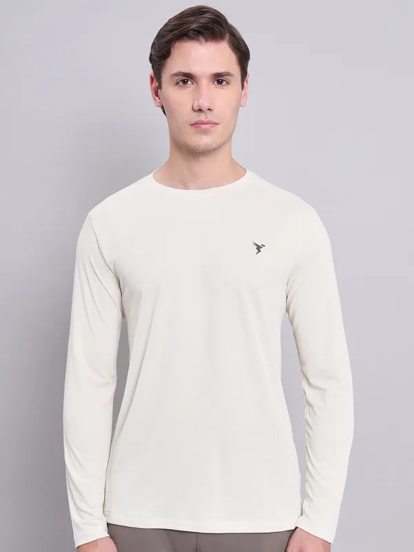 Men Solid Slim Fit Crew Neck T-shirt with TECHNO COOL+
