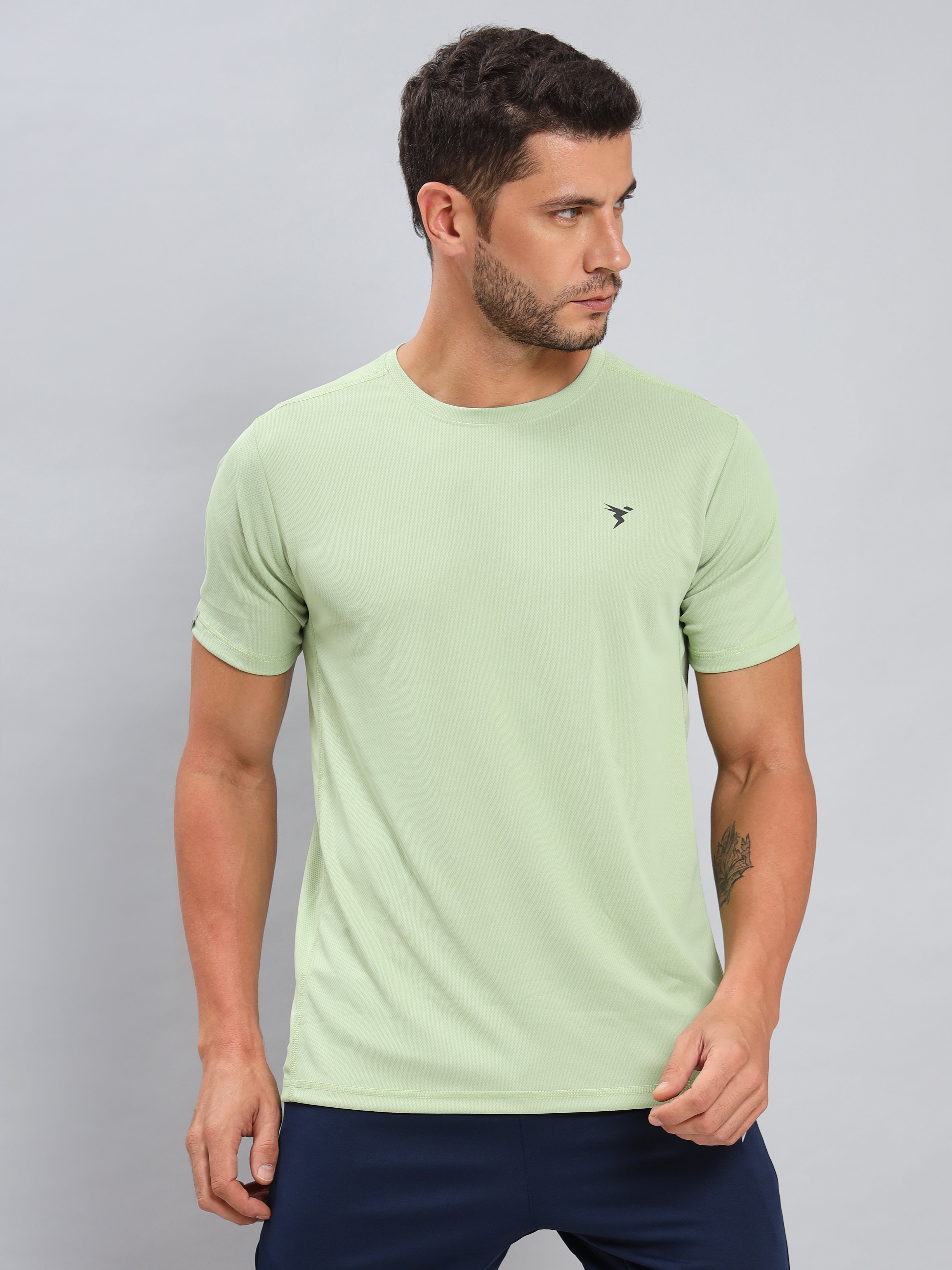 Men Solid Slim Fit Crew Neck T-shirt with TECHNO COOL+