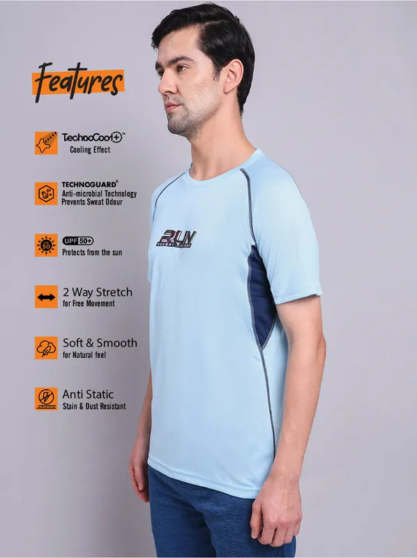 Men Printed Regular Fit Crew Neck T-shirt with TECHNO COOL+