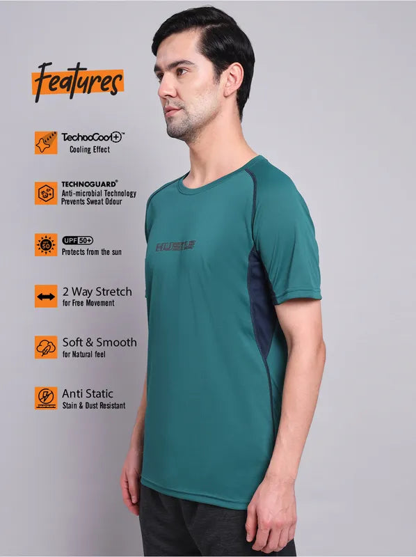 Men Printed Regular Fit Crew Neck T-shirt with TECHNO COOL+