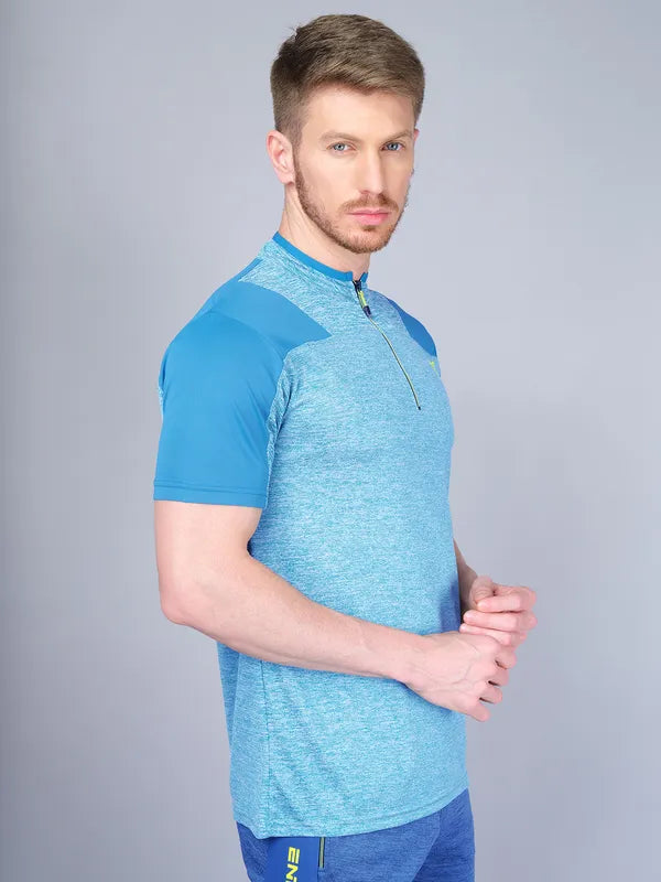 Offer Valid on a Minimum Cart Value of ₹999Men Melange Slim Fit Mock Neck T-shirt with DOUBLE COOL