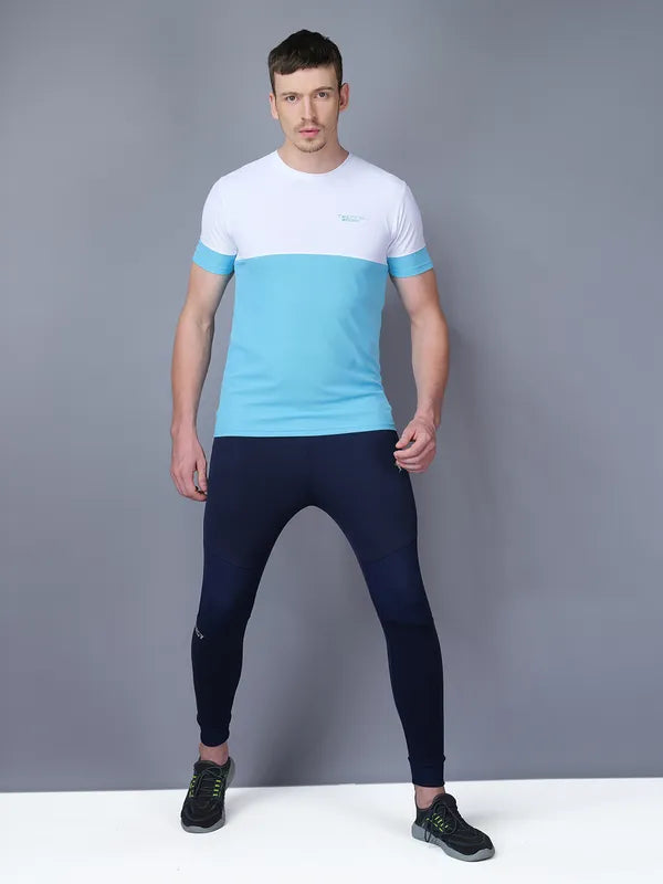 Offer Valid on a Minimum Cart Value of ₹999Men Colorblock Slim Fit Crew Neck T-shirt with TECHNO GUARD