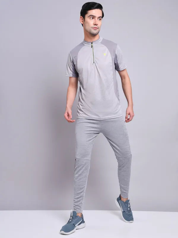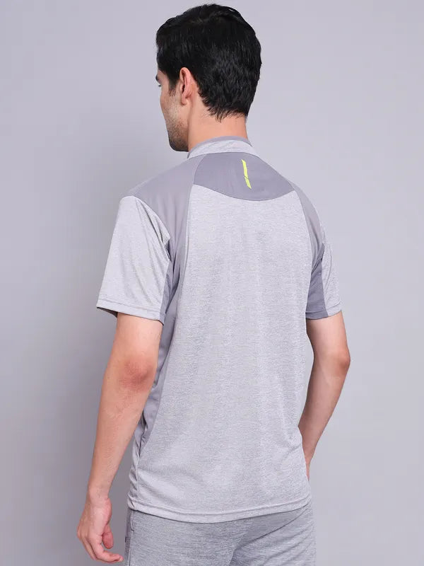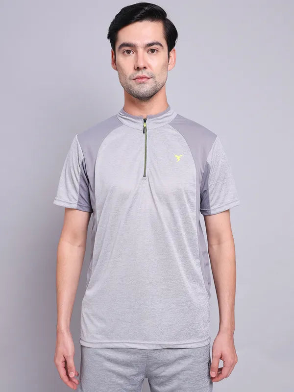 Offer Valid on a Minimum Cart Value of ₹999Men Melange Slim Fit Mock Neck T-shirt with TECHNO COOL+