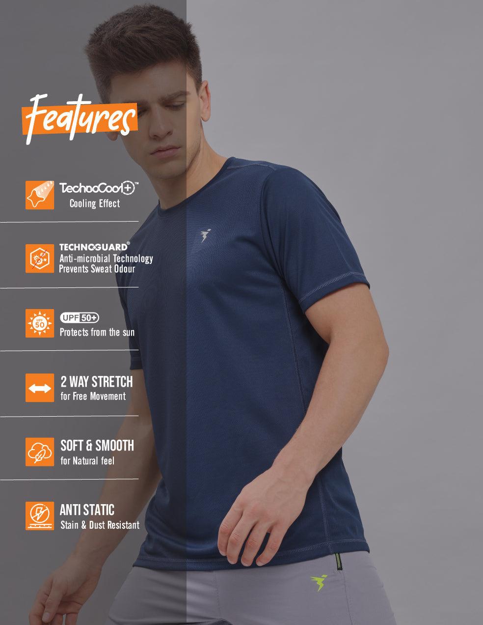 Men Solid Slim Fit Crew Neck T-shirt with TECHNO COOL+