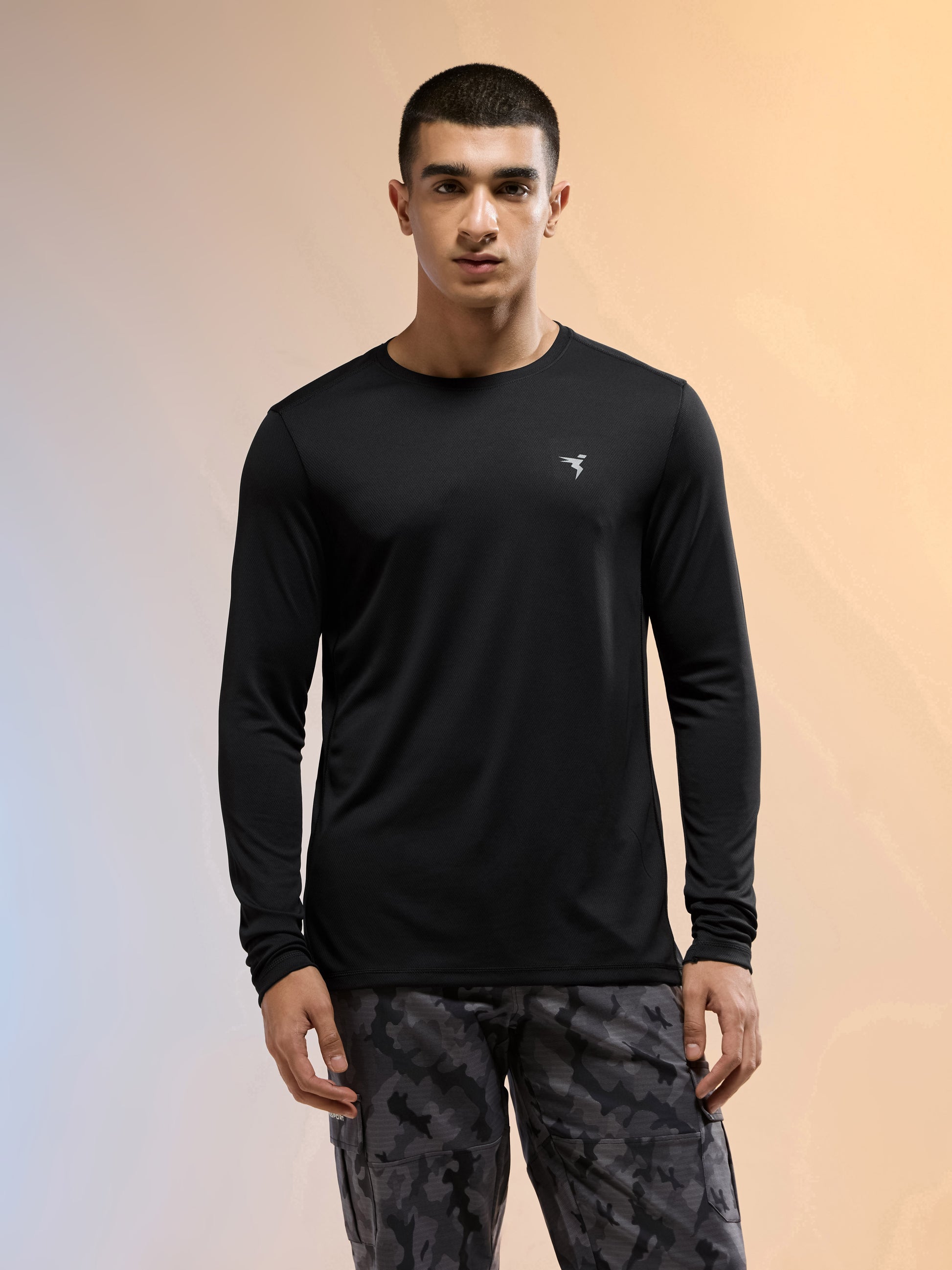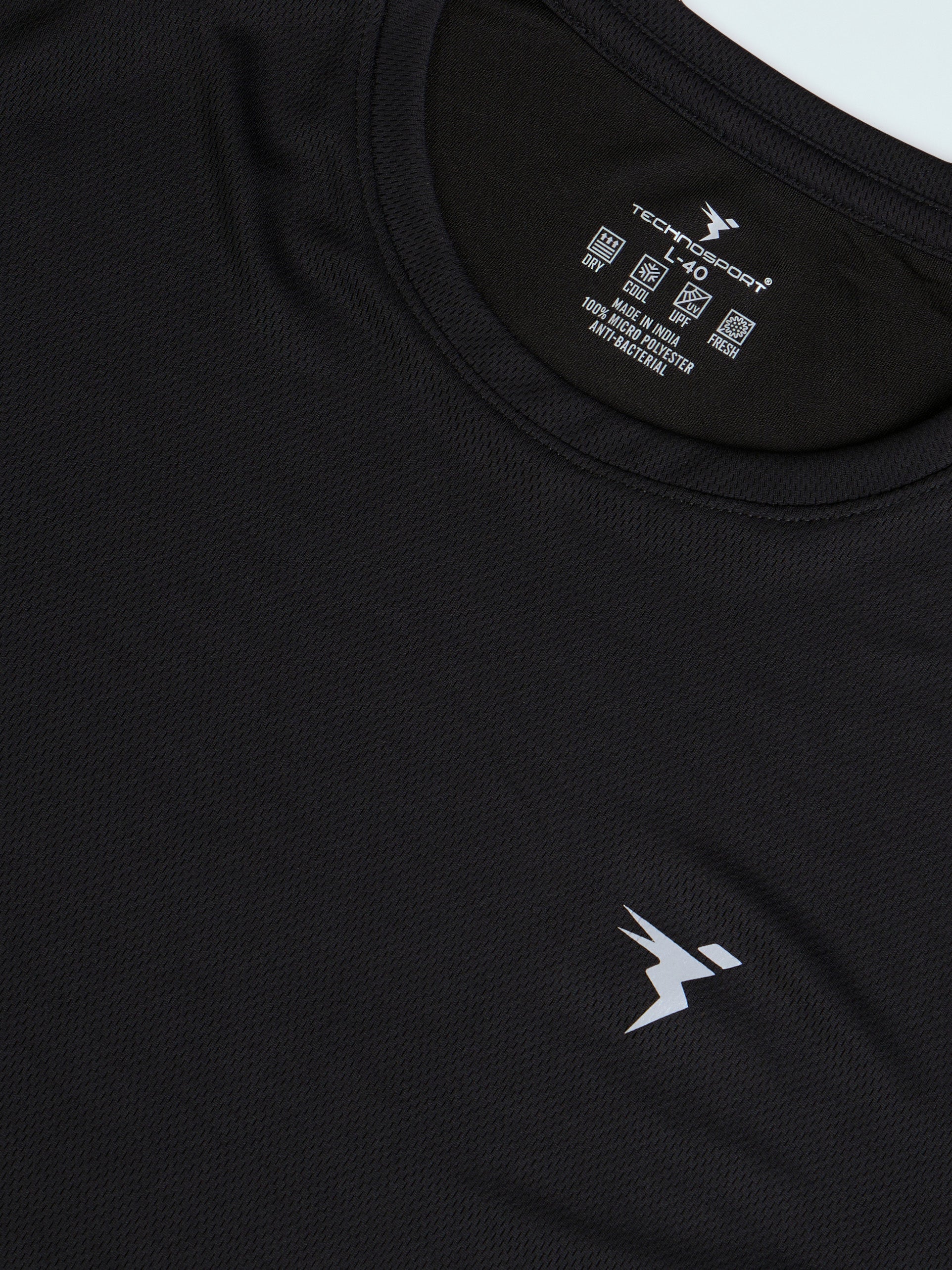 Men Solid Slim Fit Crew Neck T-shirt with TECHNO COOL+