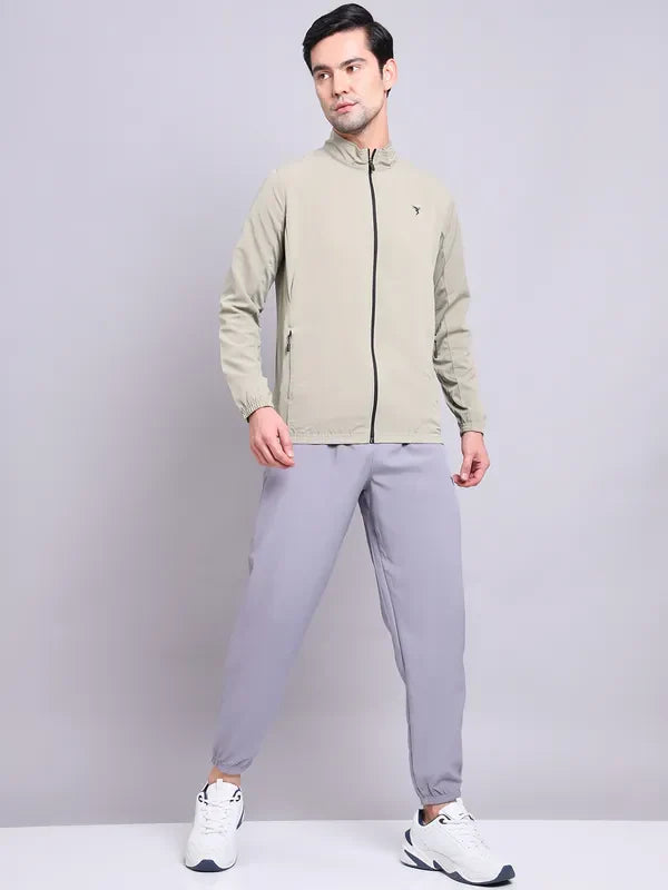 Men Solid Slim Fit Mock Neck Jacket with TECHNOLITE