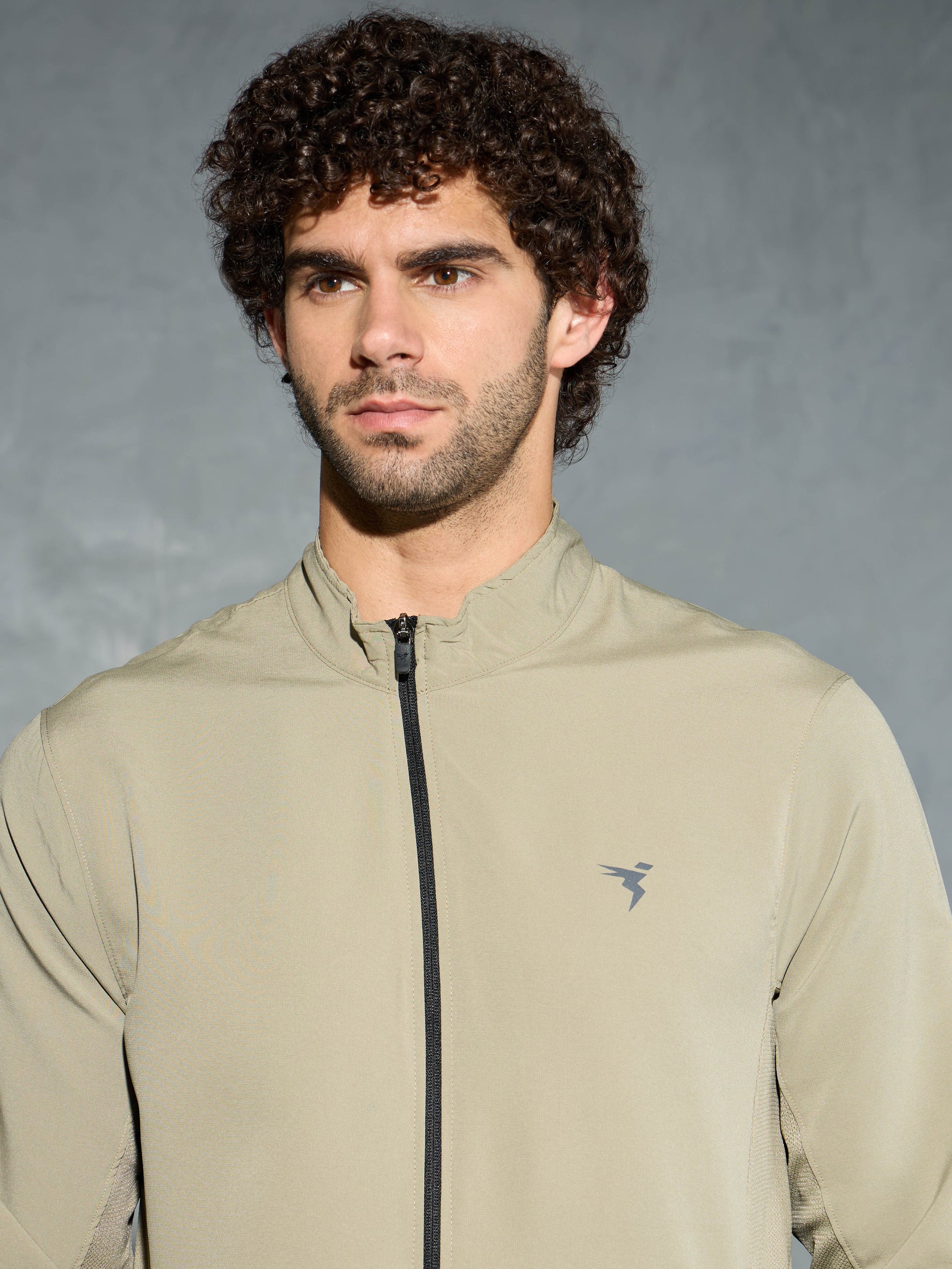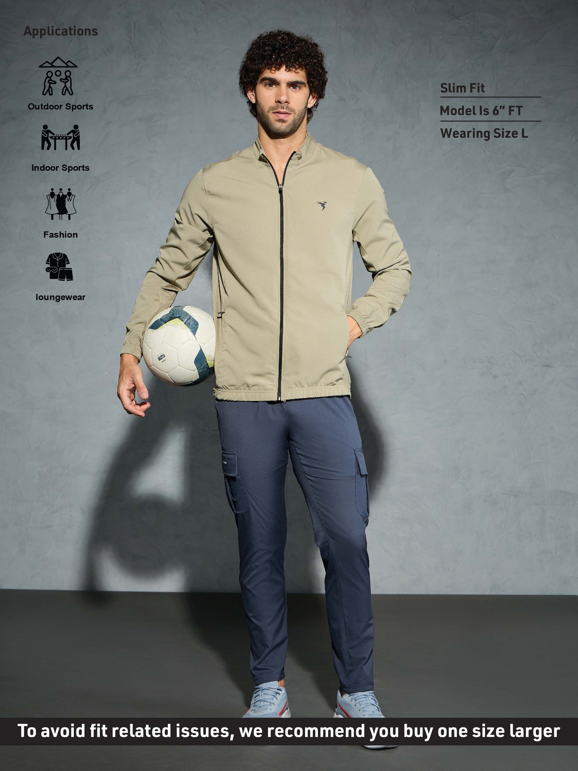 Men Solid Slim Fit Mock Neck Jacket with TECHNOLITE