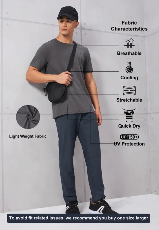 Experience the comfort of cotton with the performance of polyester in our innovative T-shirt. Featuring built-in memory technology, it effortlessly returns to its original shape after wear. Its lightweight and stretchable fabric provide exceptional comfort for all-day wear.Our T-shirt boasts revolutionary fabric technology that offers multi-directional stretch without traditional spandex. The yarn's innovative design creates a smooth yet textured surface, enhancing durability and eco-friendliness by minimizing fiber shedding. With inbuilt memory, wrinkles vanish with a simple wave, ensuring effortless maintenance.