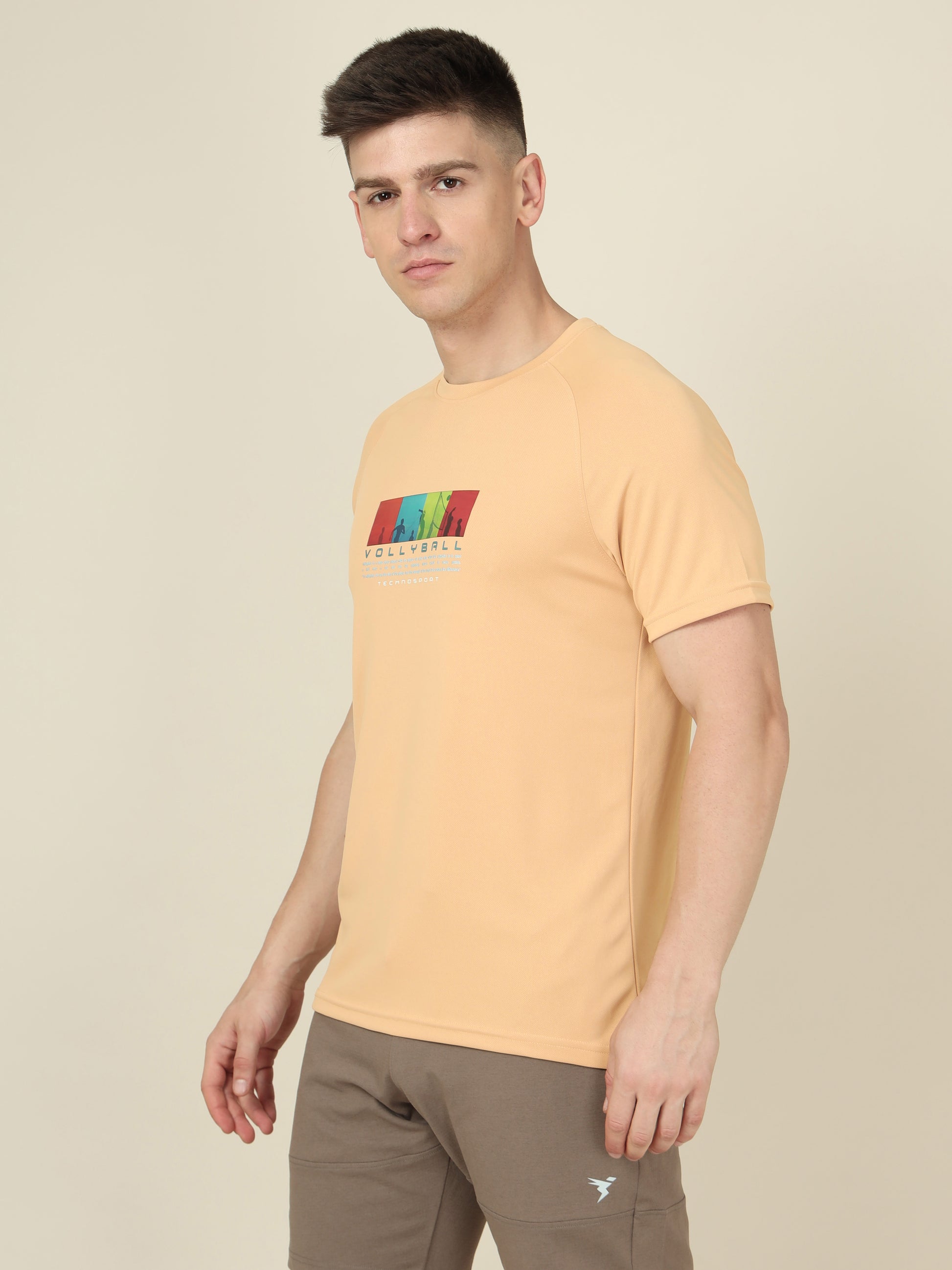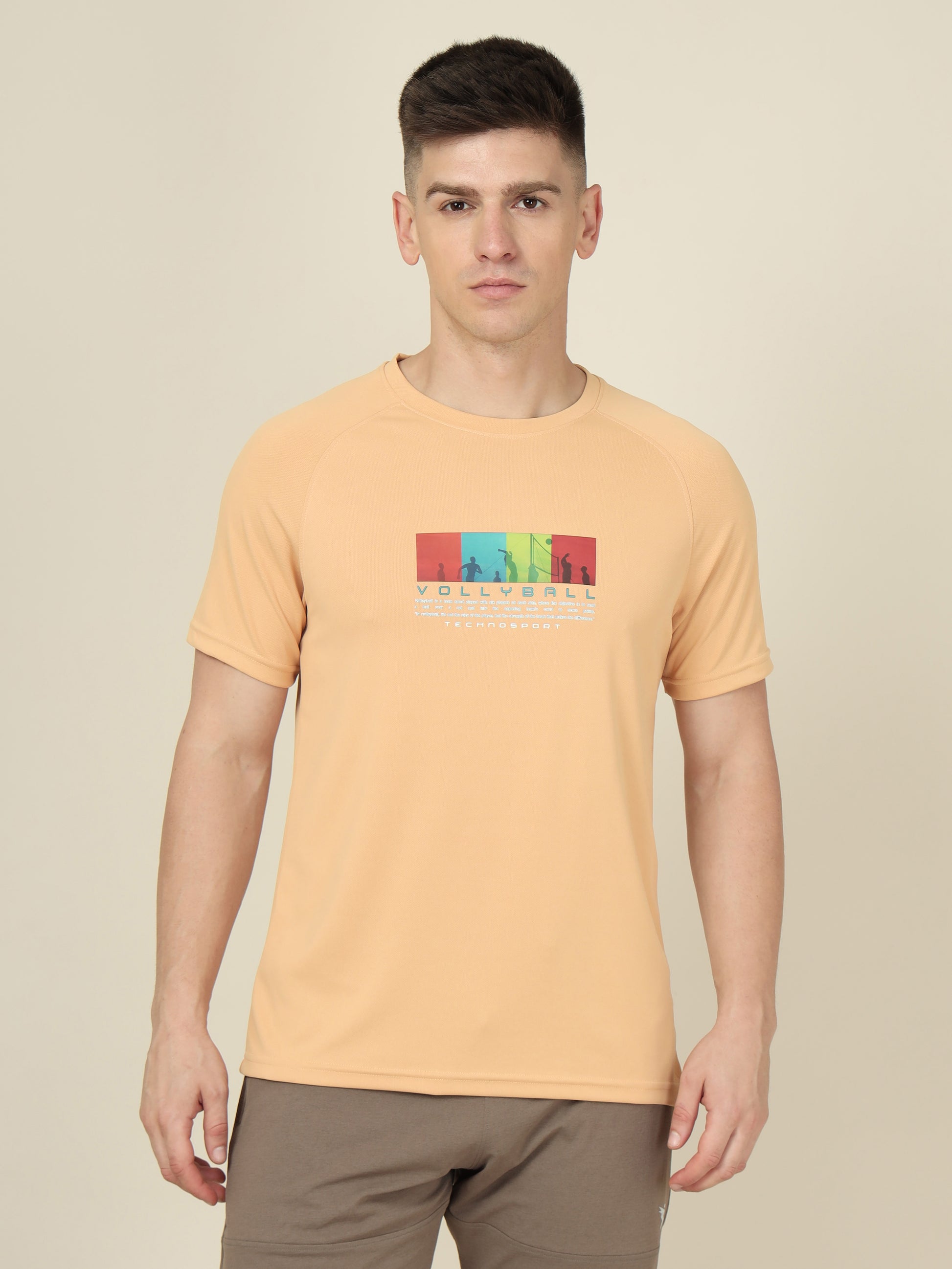 Offer Valid on a Minimum Cart Value of ₹999Men Graphic Printed Slim Fit Crew Neck T-shirt with TECHNO COOL+