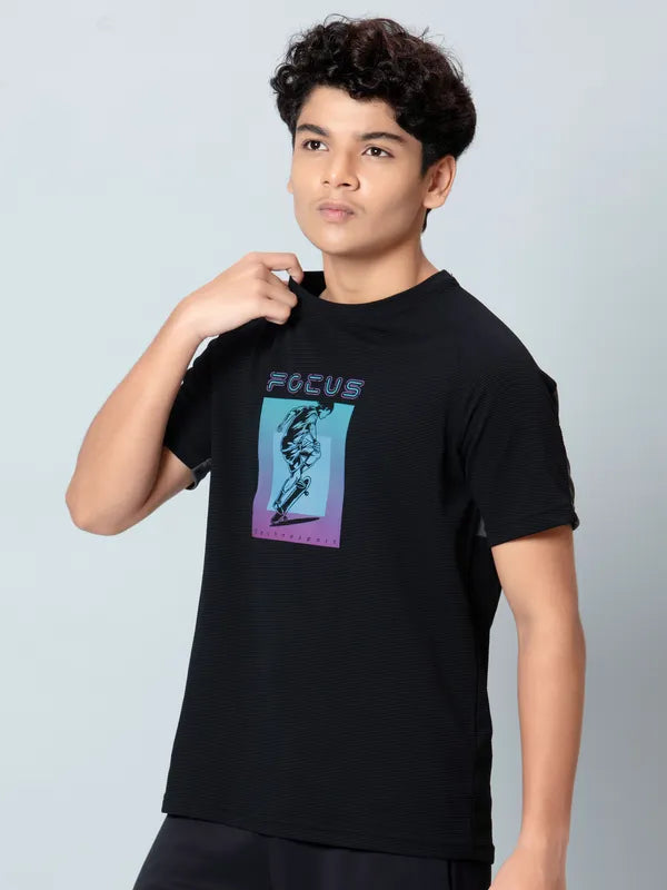 Offer Valid on a Minimum Cart Value of ₹999Boys Typography Printed Slim Fit Crew Neck T-shirt with ELASTO PLUS