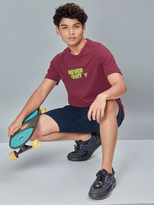 Offer Valid on a Minimum Cart Value of ₹999Boys Typography Printed Slim Fit Crew Neck T-shirt with ELASTO PLUS