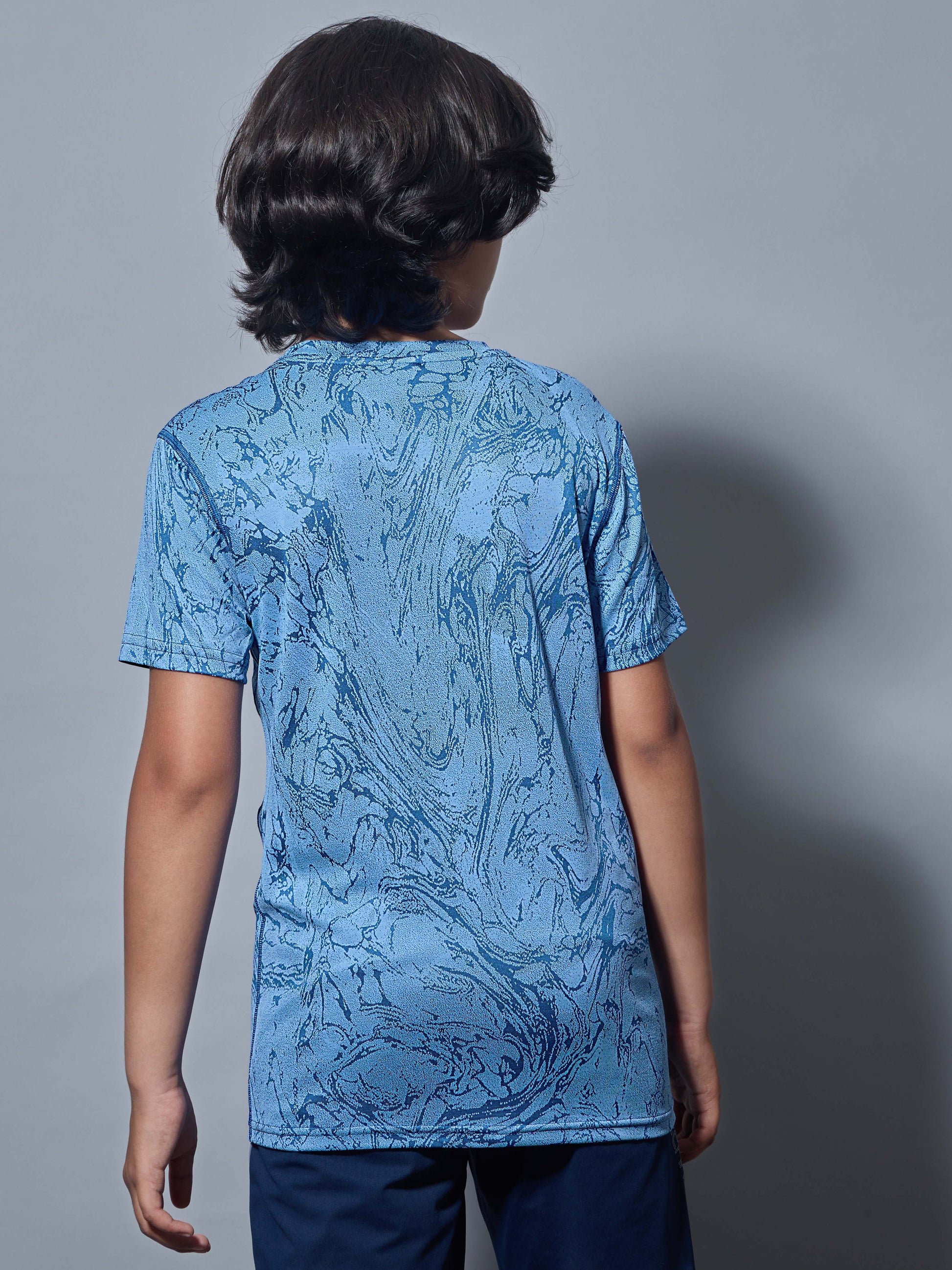 Boys Self Design Slim Fit Crew Neck T-shirt with DOUBLE COOL