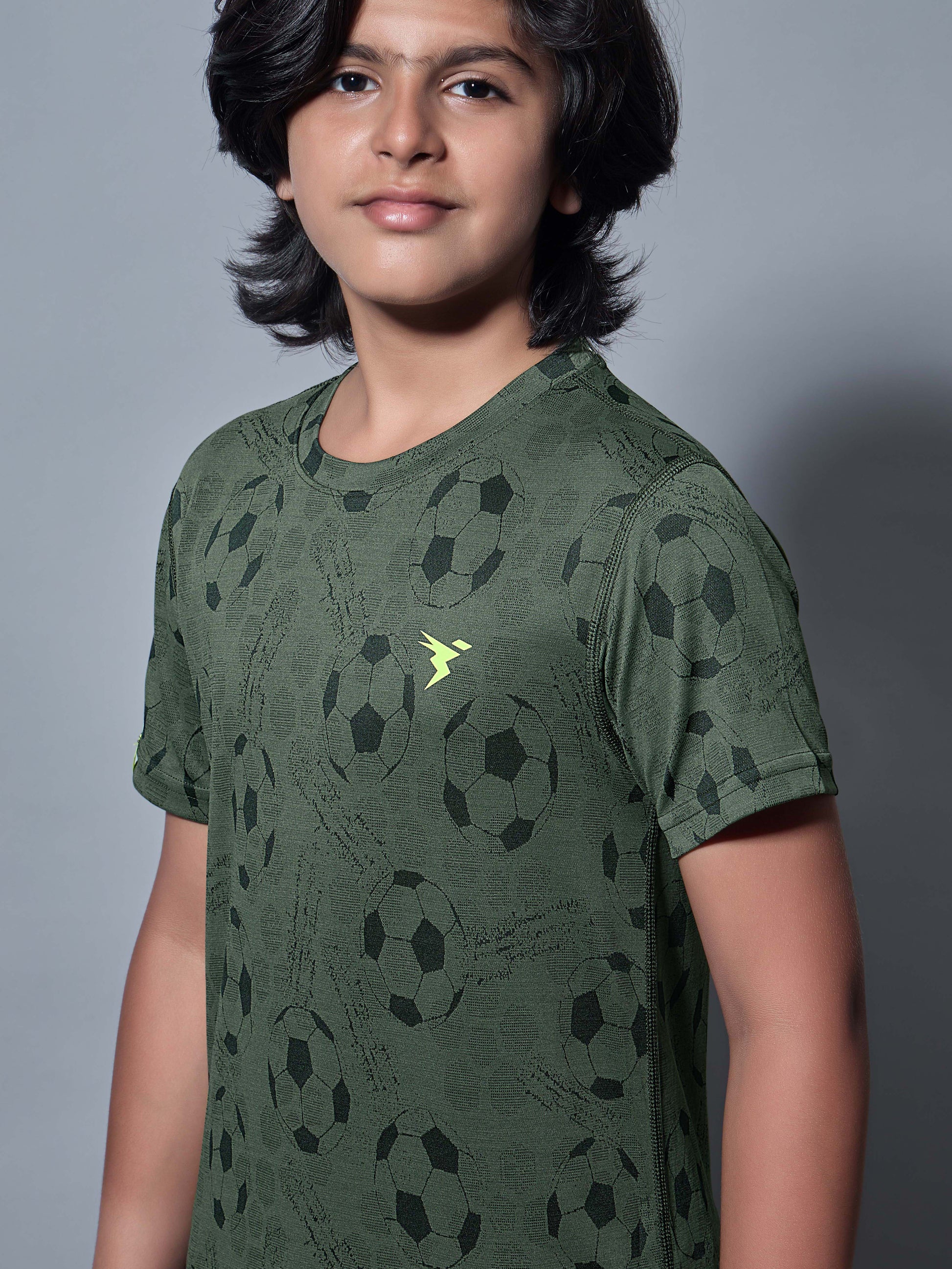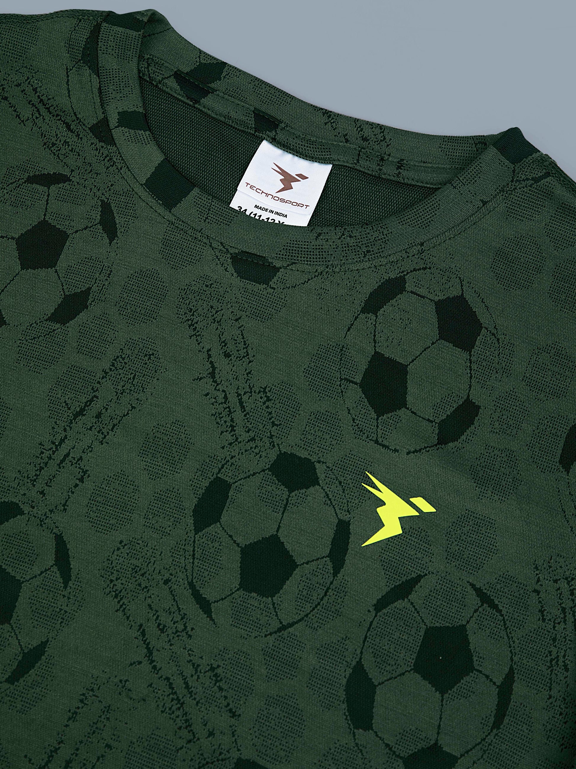 Boys Self Design Slim Fit Crew Neck T-shirt with DOUBLE COOL