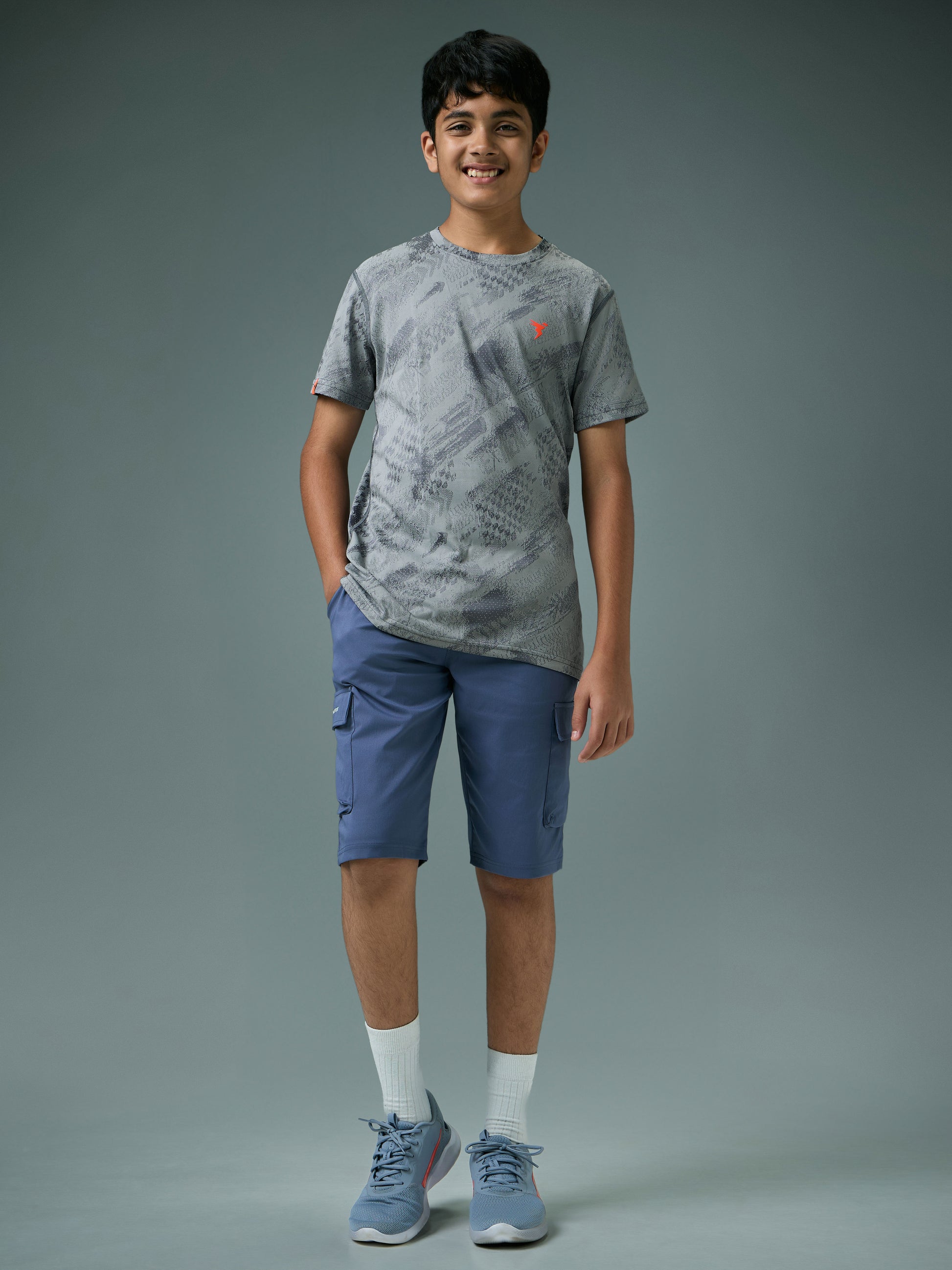 Boys Self Design Slim Fit Crew Neck T-shirt with DOUBLE COOL
