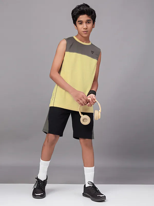 Offer Valid on a Minimum Cart Value of ₹999Boys Colorblock Slim Fit Crew Neck T-shirt with TECHNO GUARD