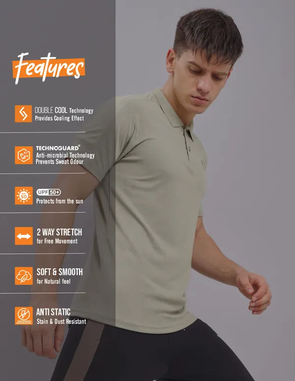 Introducing our Men's Polo Active T-Shirt with DOUBLE COOL for an extra cooling effect. Enhanced with UPF50+ sun protection, ODOURFREE freshness, TECHNOGUARD anti-microbial shield, 2-Way Stretch for freedom of movement, Soft & Smooth touch, and Anti Static technology. Stay cool, protected, and comfortable redefine your active style