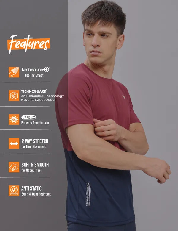 Offer Valid on a Minimum Cart Value of ₹999Men Colorblock Slim Fit Crew Neck T-shirt with DOUBLE COOL