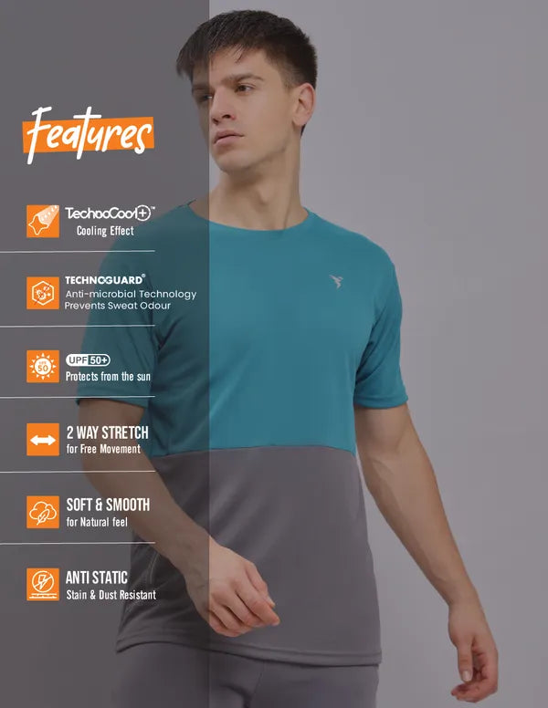 Offer Valid on a Minimum Cart Value of ₹999Men Colorblock Slim Fit Crew Neck T-shirt with DOUBLE COOL