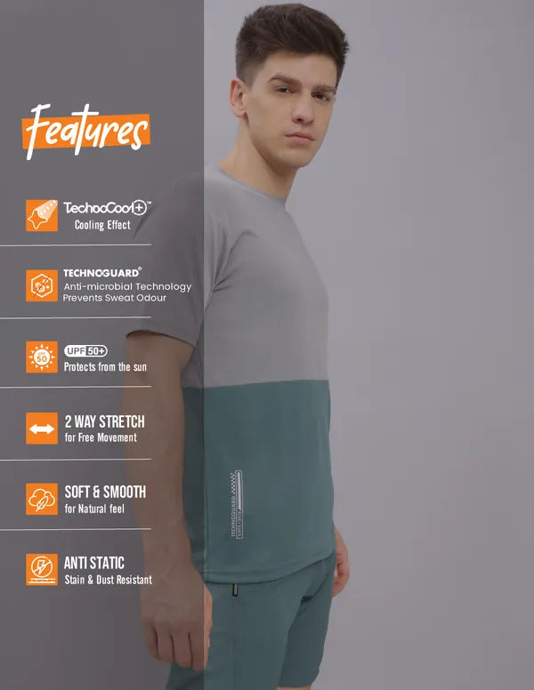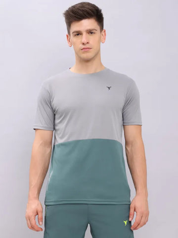 Offer Valid on a Minimum Cart Value of ₹999Men Colorblock Slim Fit Crew Neck T-shirt with DOUBLE COOL