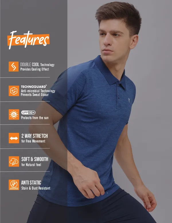 Introducing our Men's Polo Active T-Shirt with DOUBLE COOL for an extra cooling effect. Enhanced with UPF50+ sun protection, ODOURFREE freshness, TECHNOGUARD anti-microbial shield, 2-Way Stretch for freedom of movement, Soft & Smooth touch, and Anti Static technology. Stay cool, protected, and comfortable redefine your active style