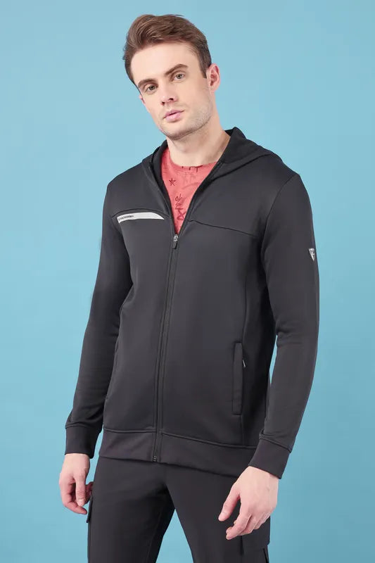Offer Valid on a Minimum Cart Value of ₹999Men Solid Slim Fit Hooded Jacket with TECHNO DRY