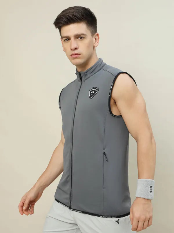 Men Solid Slim Fit Mock Neck Jacket with TECHNOLITE