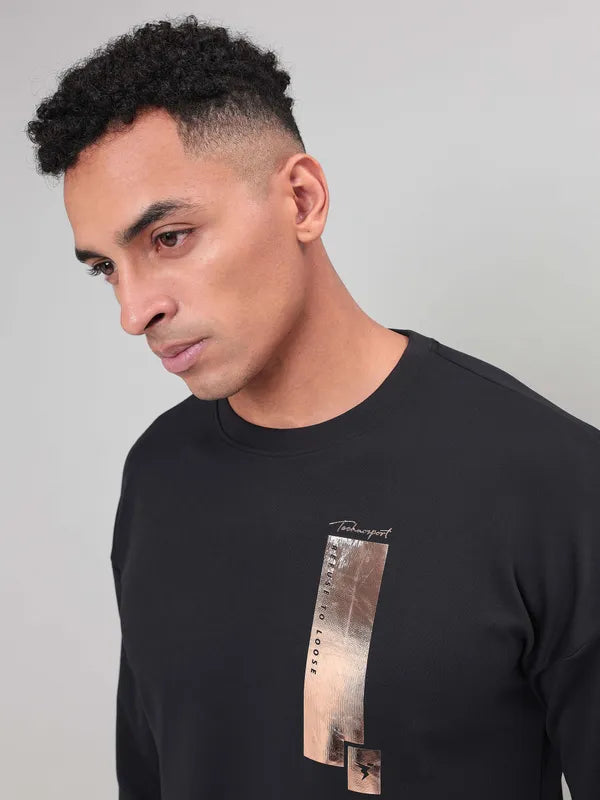 Men Printed Slim Fit Crew Neck Sweatshirt with ELASTO PLUS