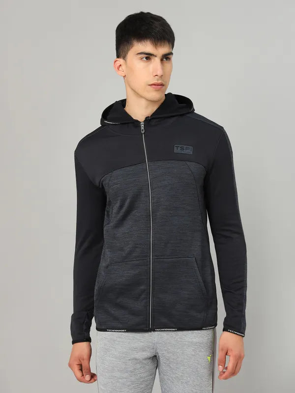 Offer Valid on a Minimum Cart Value of ₹999Men Melange Slim Fit Hooded Jacket with TECHNOLITE