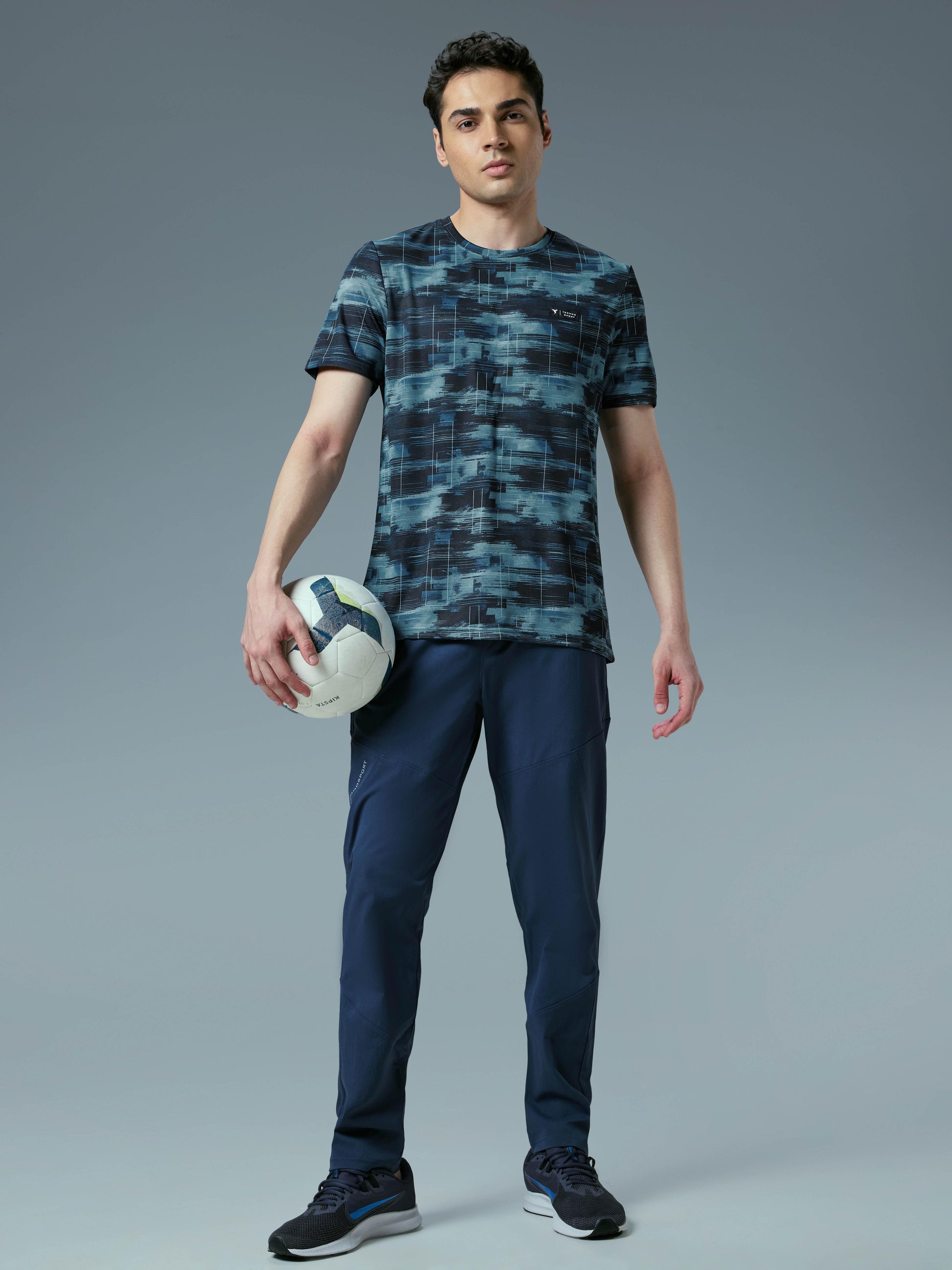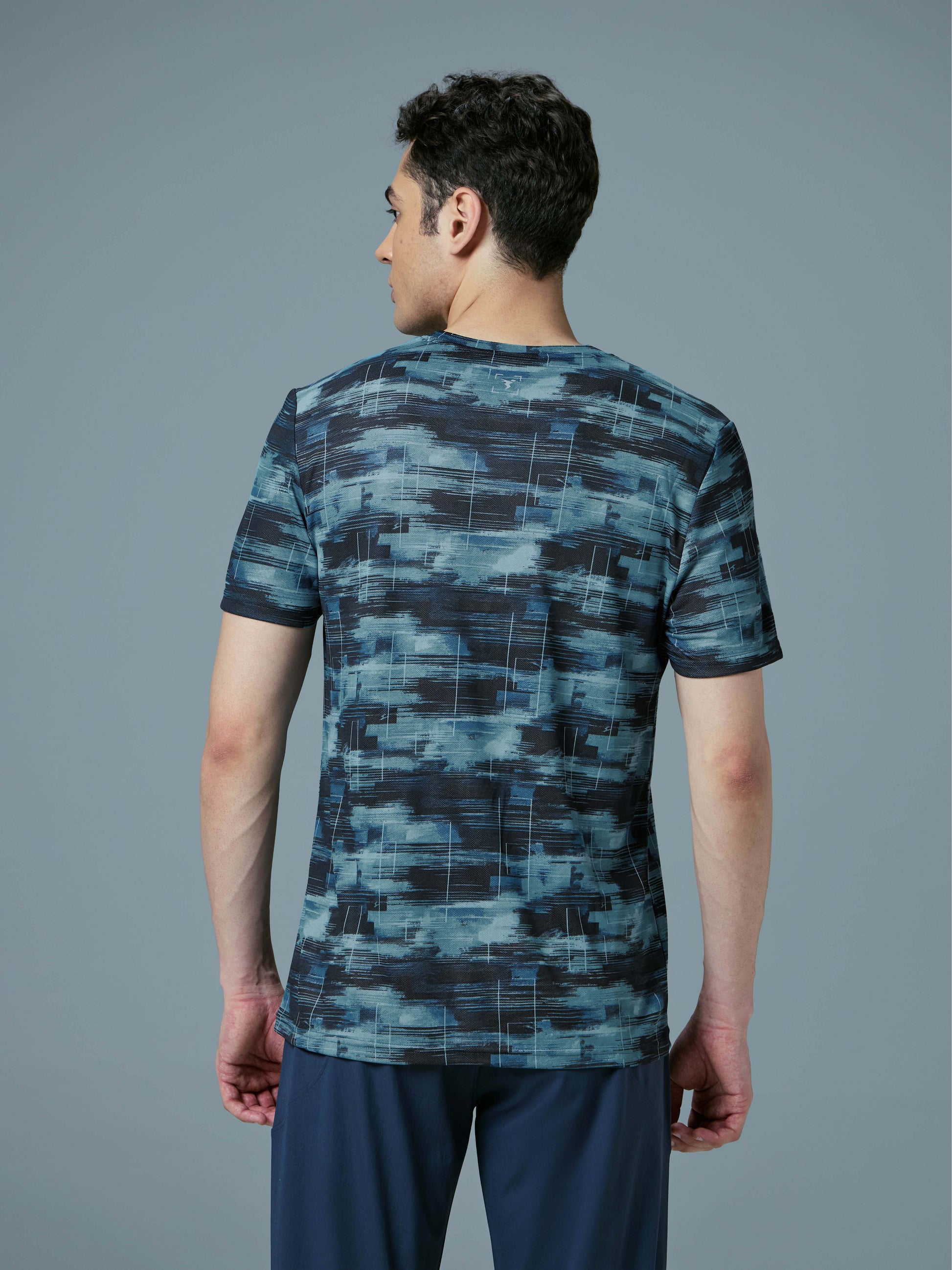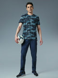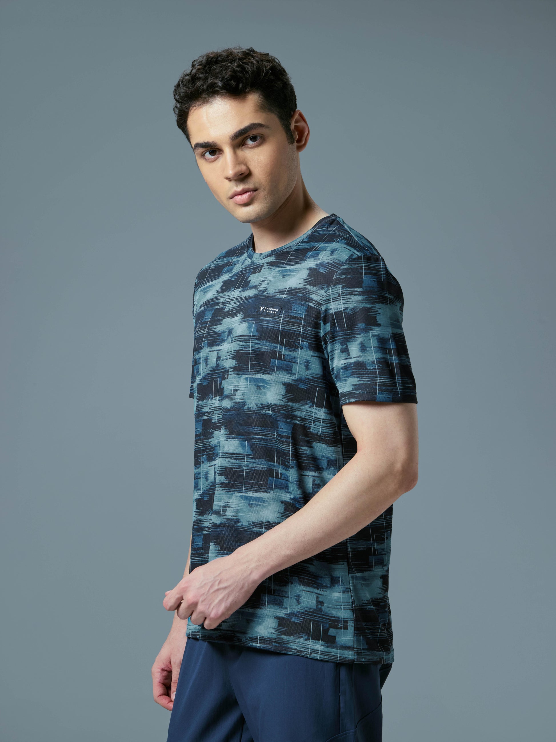 Men Abstract Print Slim Fit Crew Neck T-shirt with TECHNO COOL+