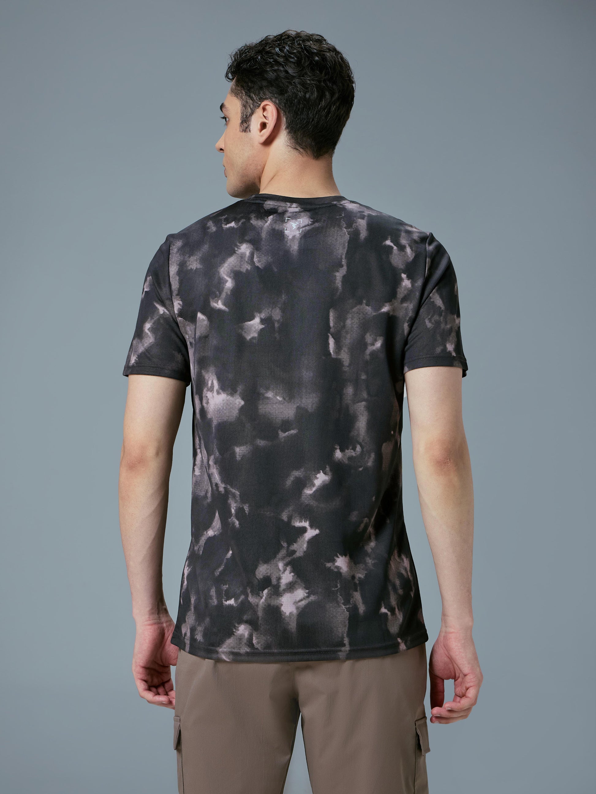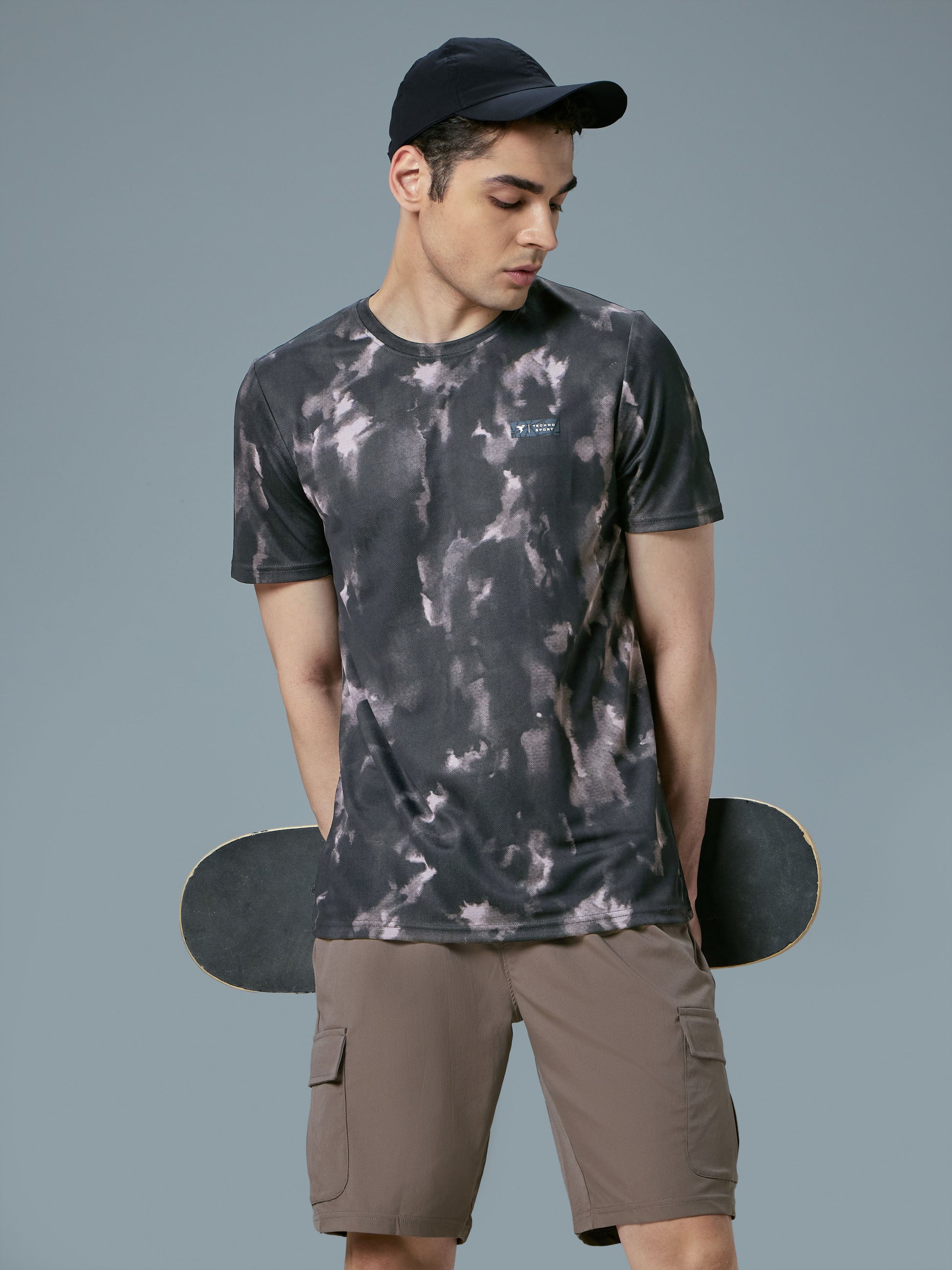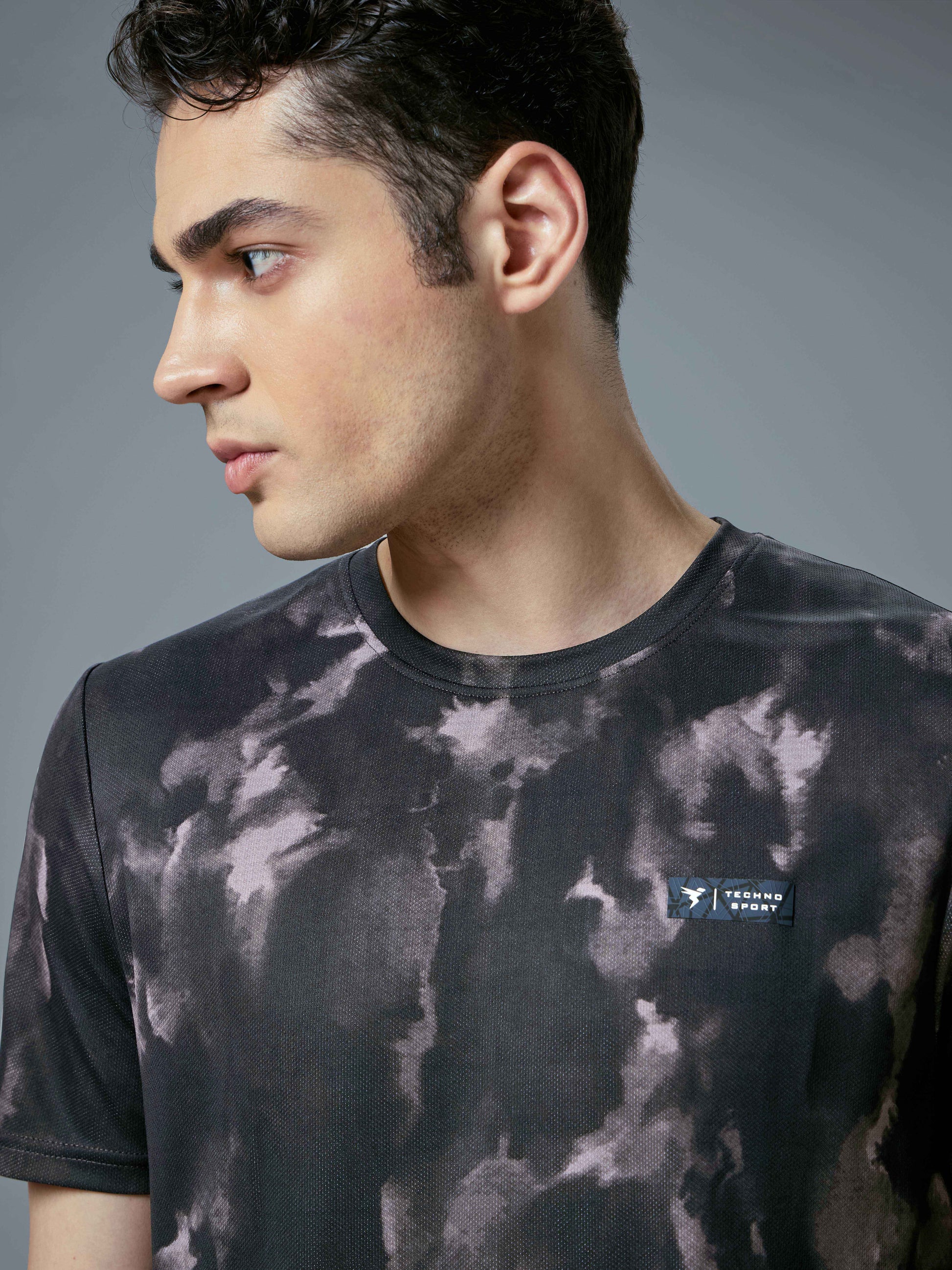 Men Abstract Print Slim Fit Crew Neck T-shirt with TECHNO COOL+