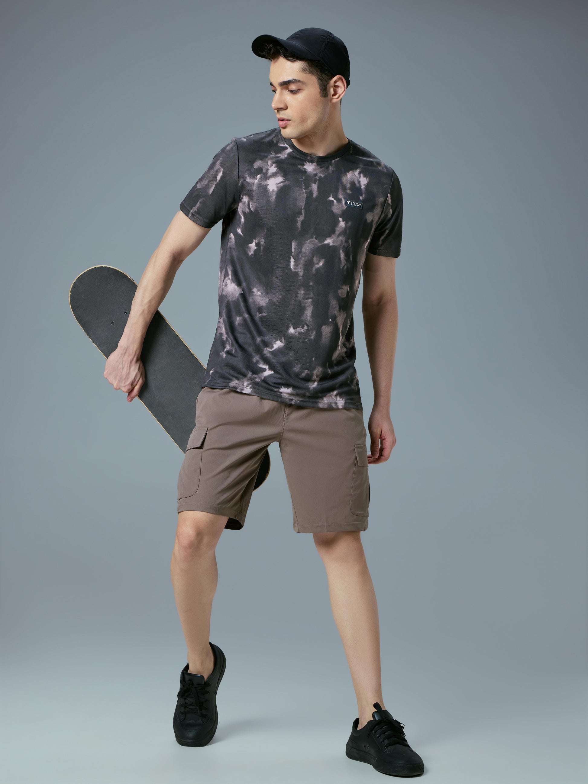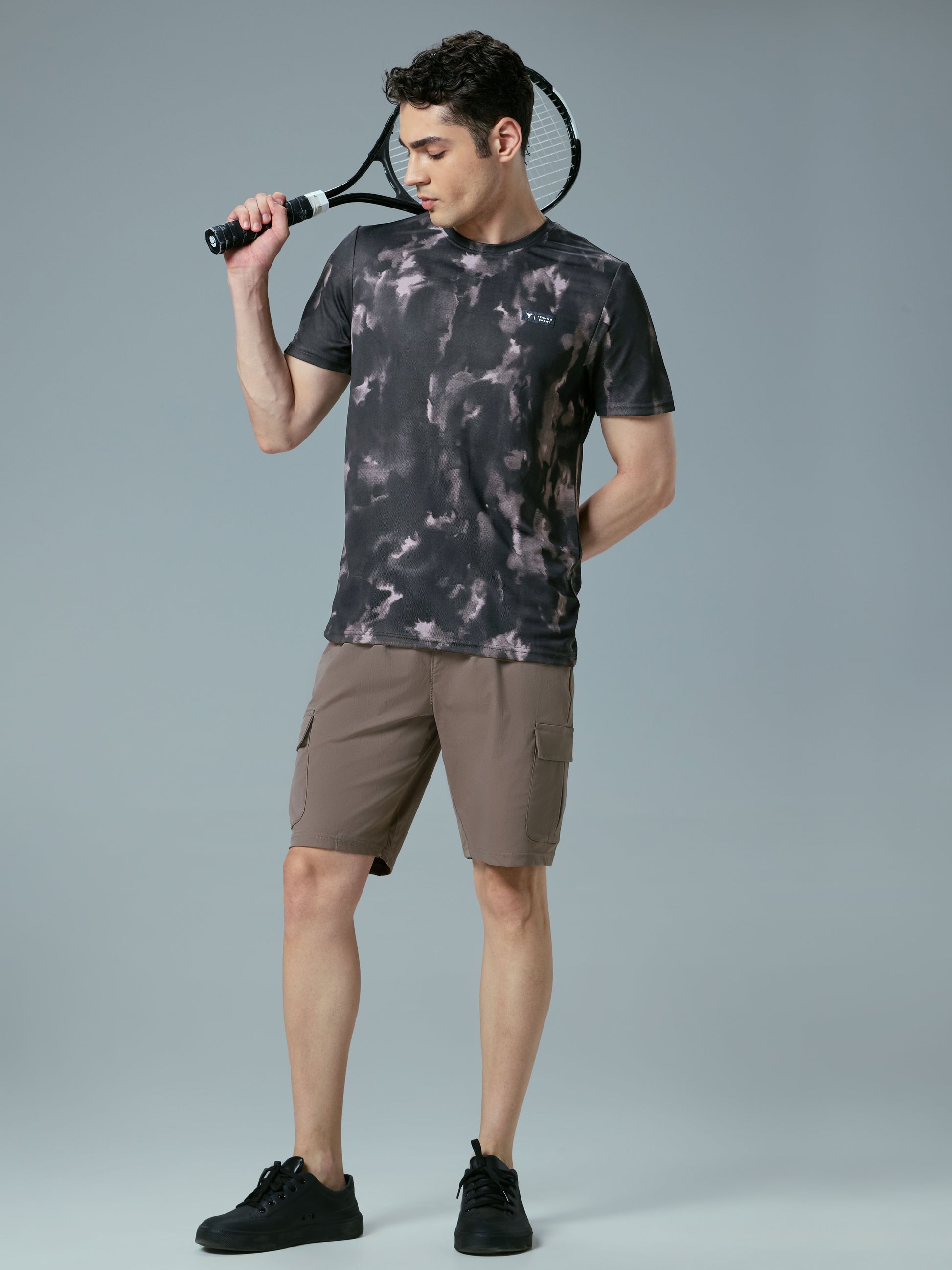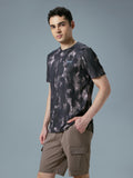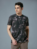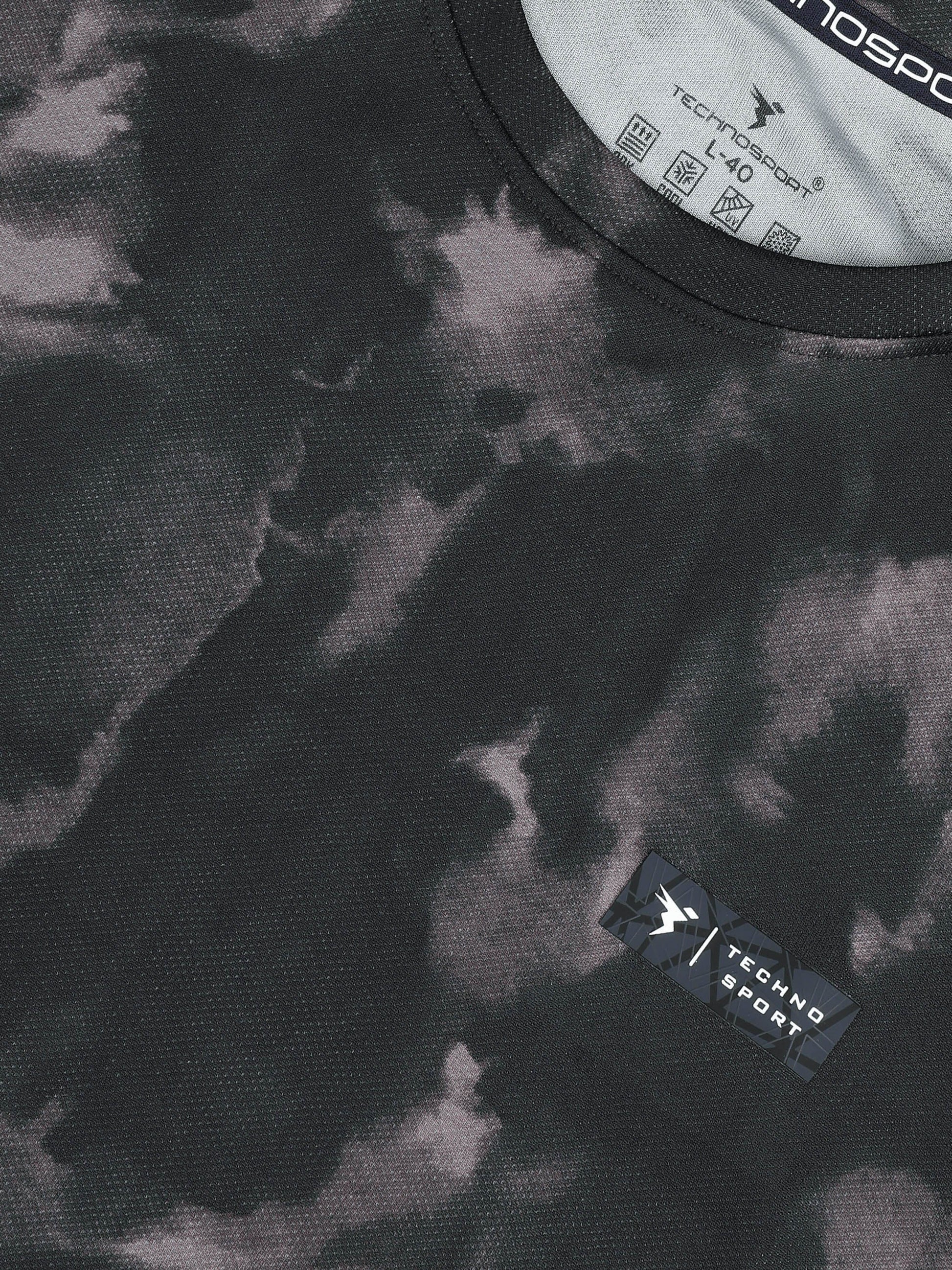 Men Abstract Print Slim Fit Crew Neck T-shirt with TECHNO COOL+