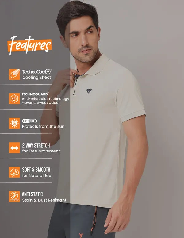 Indulge in supreme comfort with our Men's Polo Active T-Shirt featuring MATPIQ, a super-soft pique fabric with subtle texture. Enjoy UPF50+ sun protection, ODOURFREE freshness, TECHNOGUARD anti-microbial shield, 2-Way Stretch for freedom of movement, Soft & Smooth touch, and Anti Static technology. Embrace natural feel and unmatched style