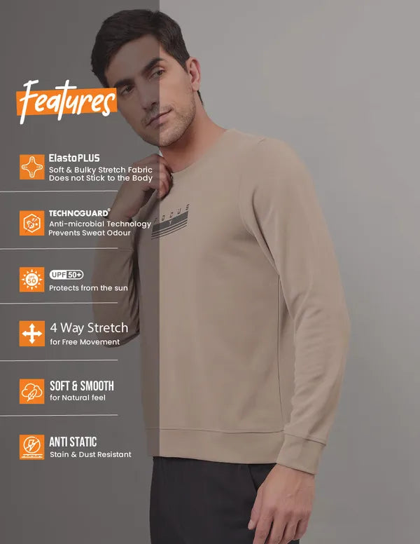 Offer Valid on a Minimum Cart Value of ₹999Men Printed Slim Fit Crew Neck Sweatshirt with ELASTO PLUS