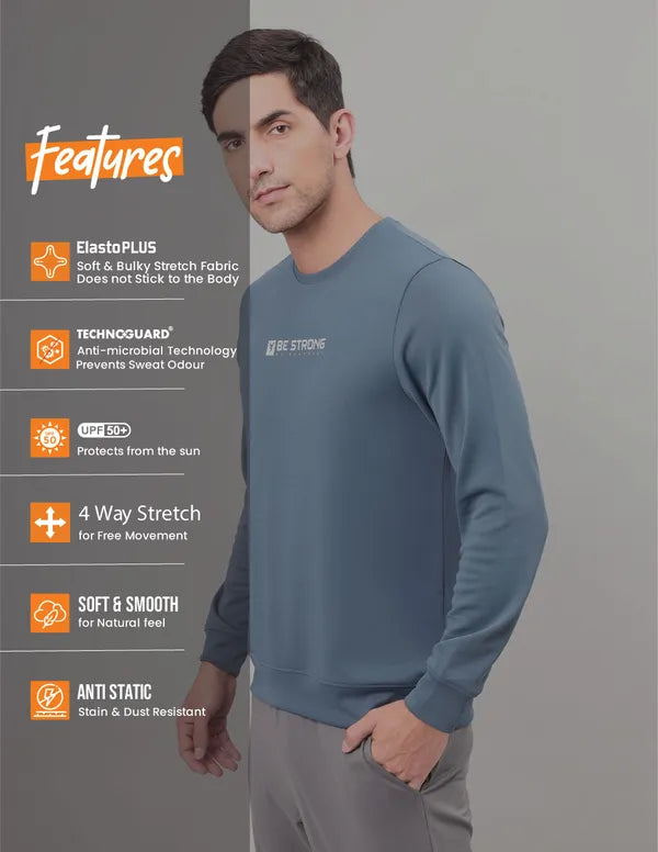 Conquer your workout in style with our Men's Active Sweatshirt, featuring ELASTO PLUS for extra stretch in a durable fabric. Enjoy UPF50+ sun protection, ODOURFREE freshness, TECHNOGUARD anti-microbial shield, 4-Way Stretch for unrestricted movement, Soft & Smooth touch, and Anti Static technology. Experience the pinnacle of comfort and performance.