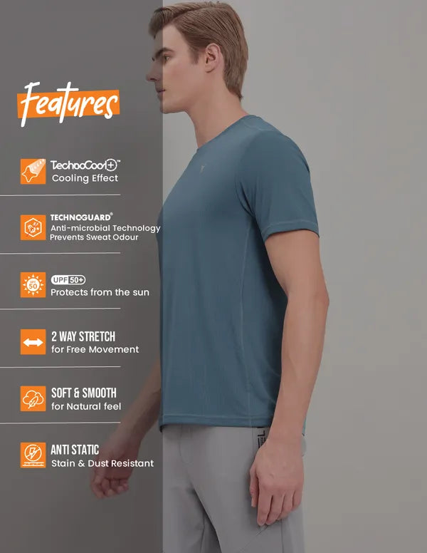 Men Solid Slim Fit Crew Neck T-shirt with TECHNO COOL+