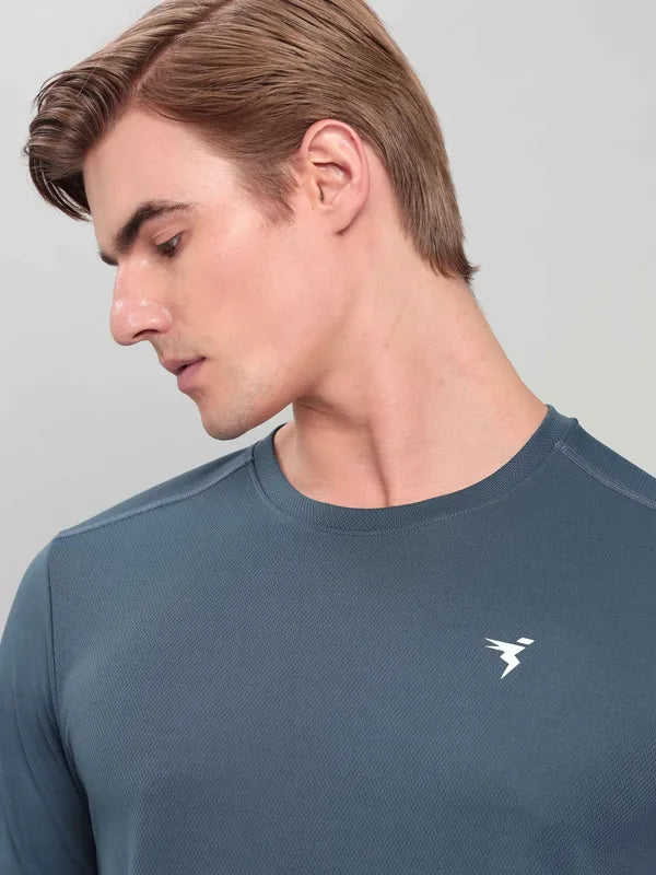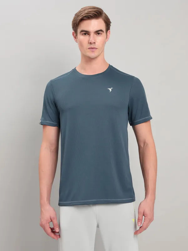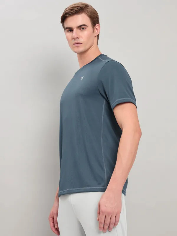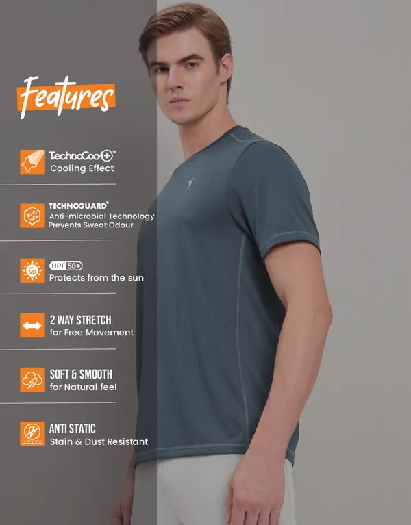 Men Solid Slim Fit Crew Neck T-shirt with TECHNO COOL+