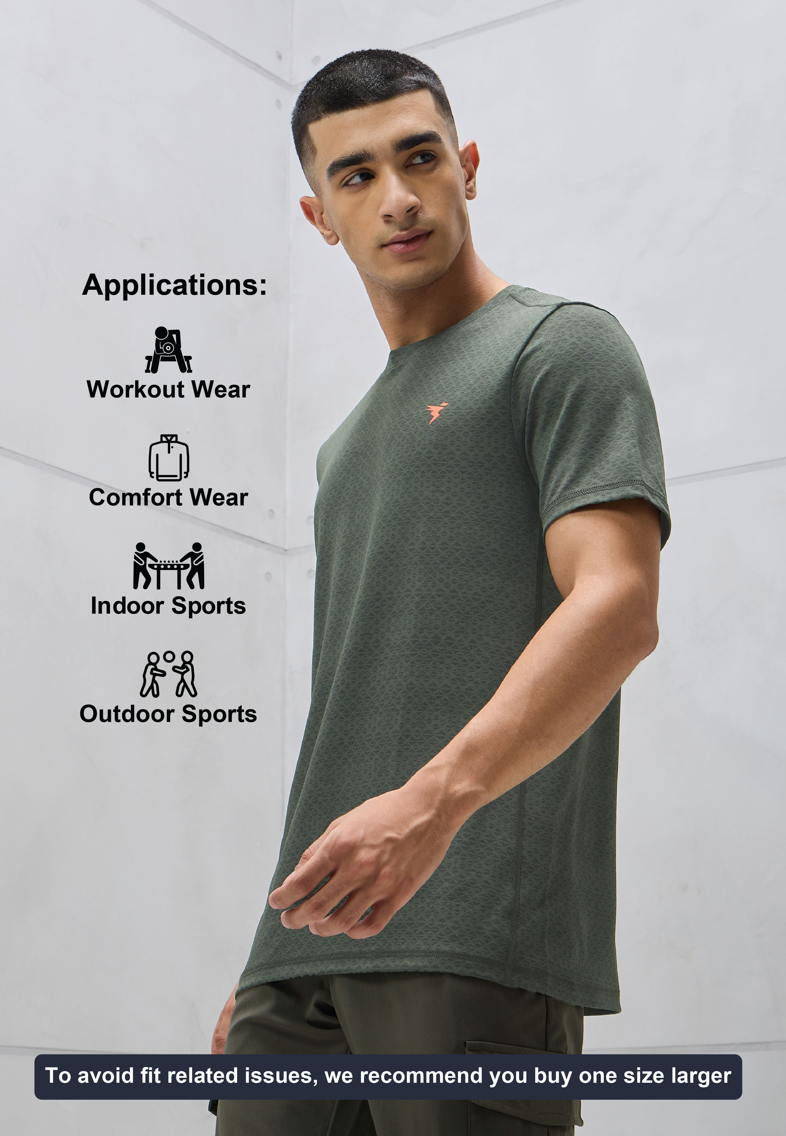 Men Jacquard Slim Fit Crew Neck T-shirt with DOUBLE COOL