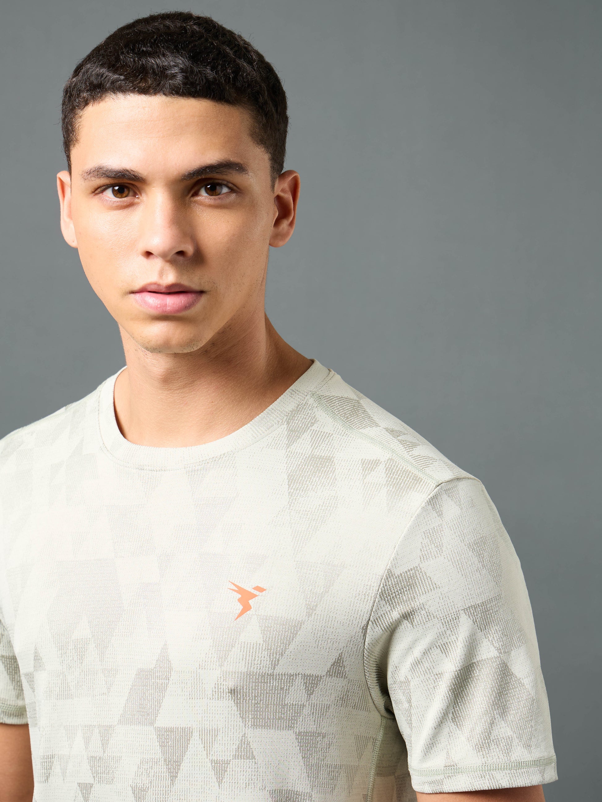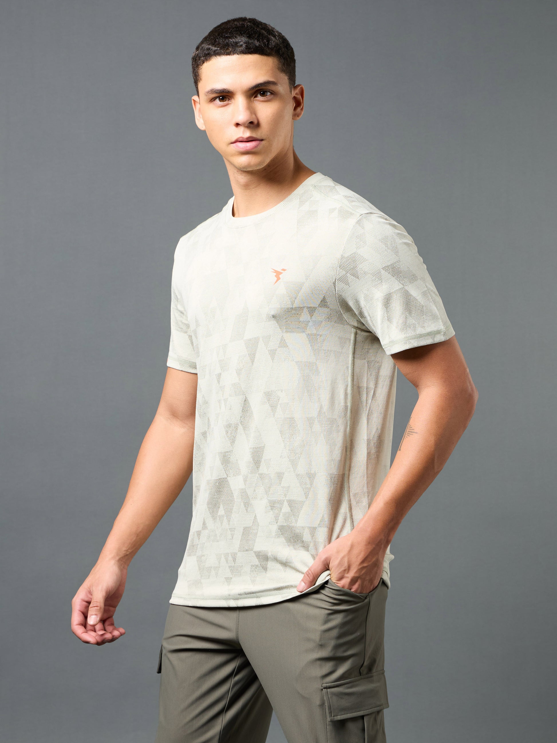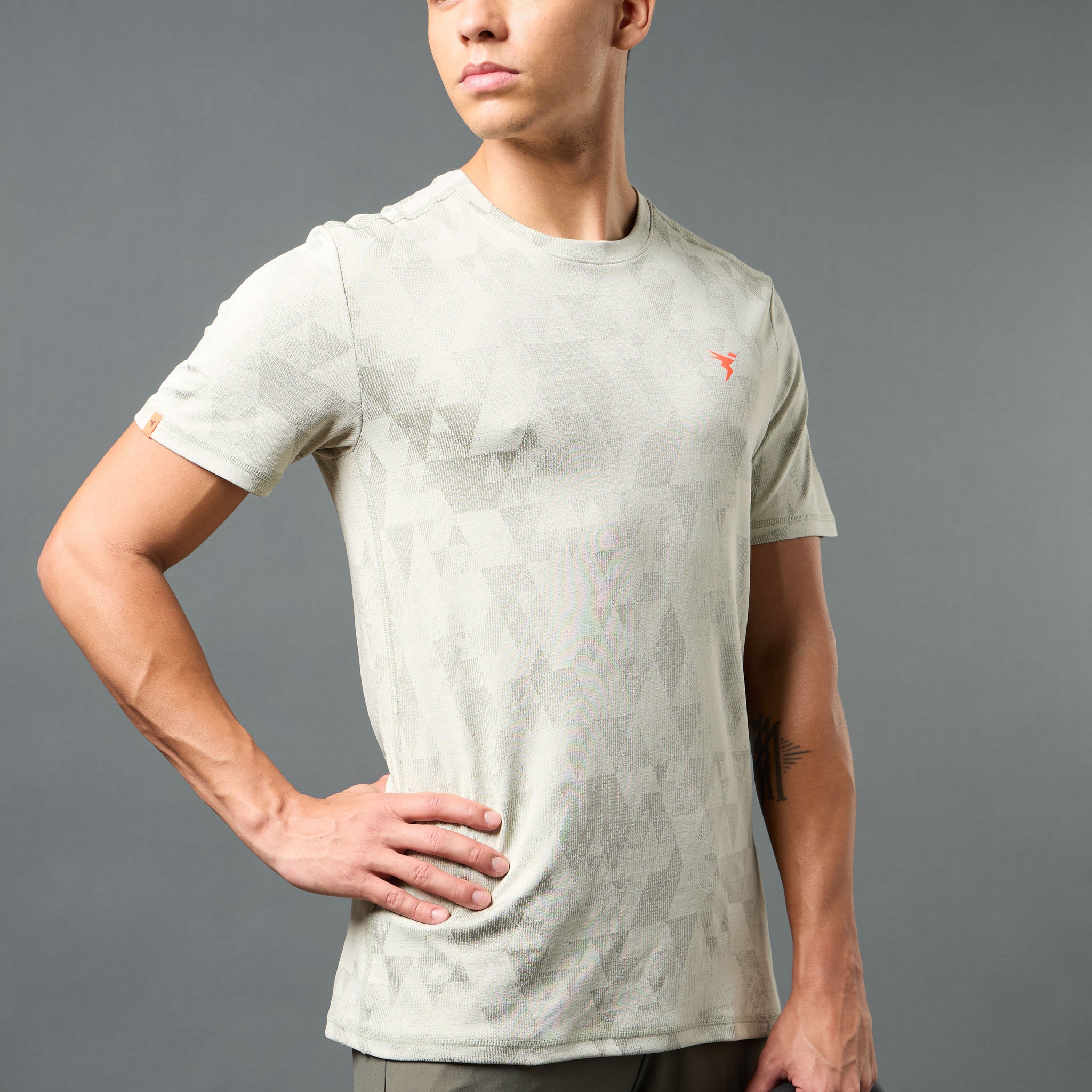 Offer Valid on a Minimum Cart Value of ₹999Men Jacquard Slim Fit Crew Neck T-shirt with DOUBLE COOL