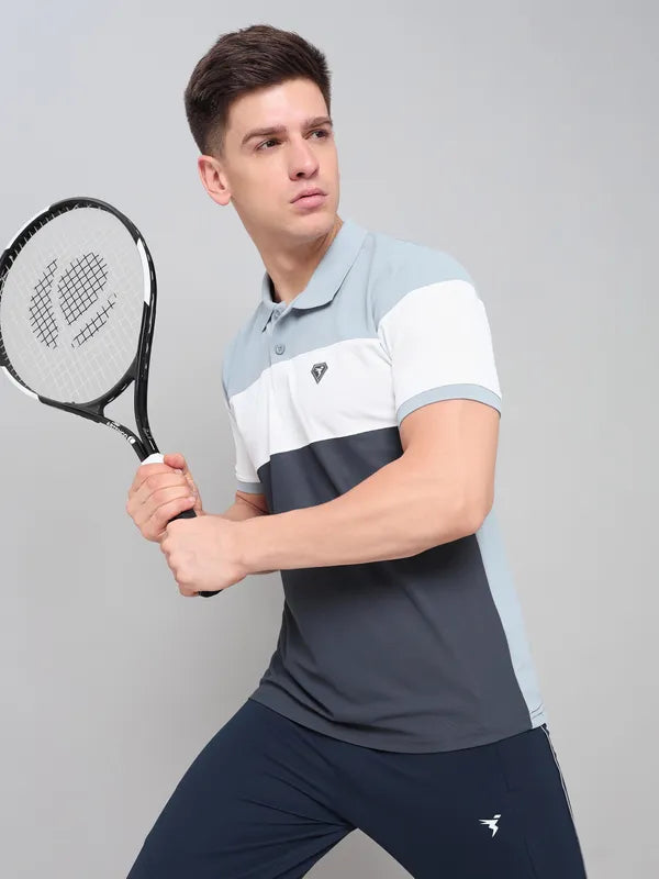 Offer Valid on a Minimum Cart Value of ₹999Men Colorblock Slim Fit Polo T-shirt with MATPIQ