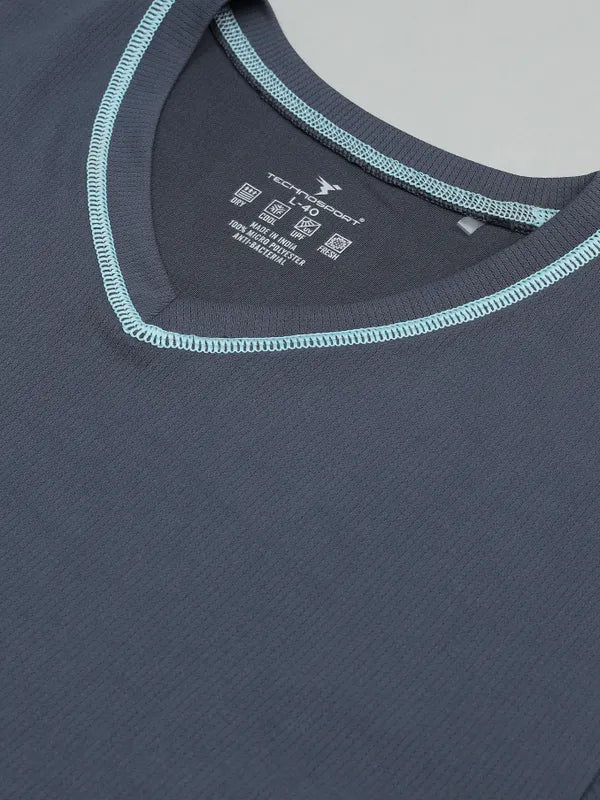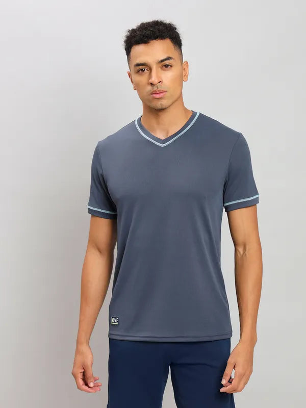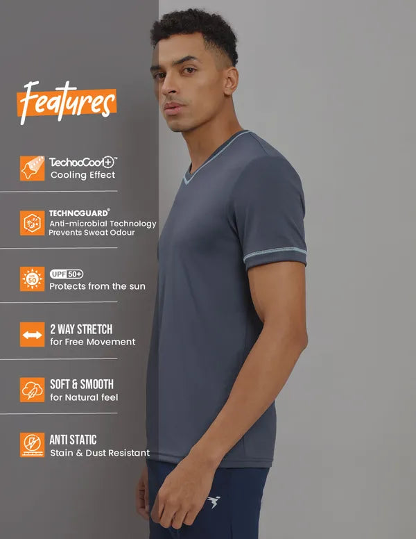 Offer Valid on a Minimum Cart Value of ₹999Men Solid Slim Fit V Neck T-shirt with TECHNO COOL+