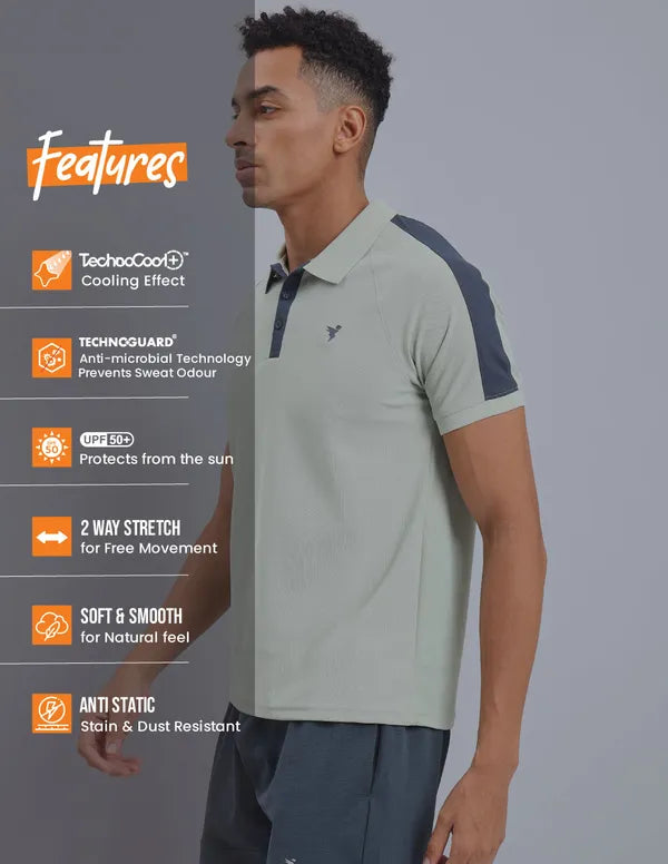 Indulge in supreme comfort with our Men's Polo Active T-Shirt featuring MATPIQ, a super-soft pique fabric with subtle texture. Enjoy UPF50+ sun protection, ODOURFREE freshness, TECHNOGUARD anti-microbial shield, 2-Way Stretch for freedom of movement, Soft & Smooth touch, and Anti Static technology. Embrace natural feel and unmatched style