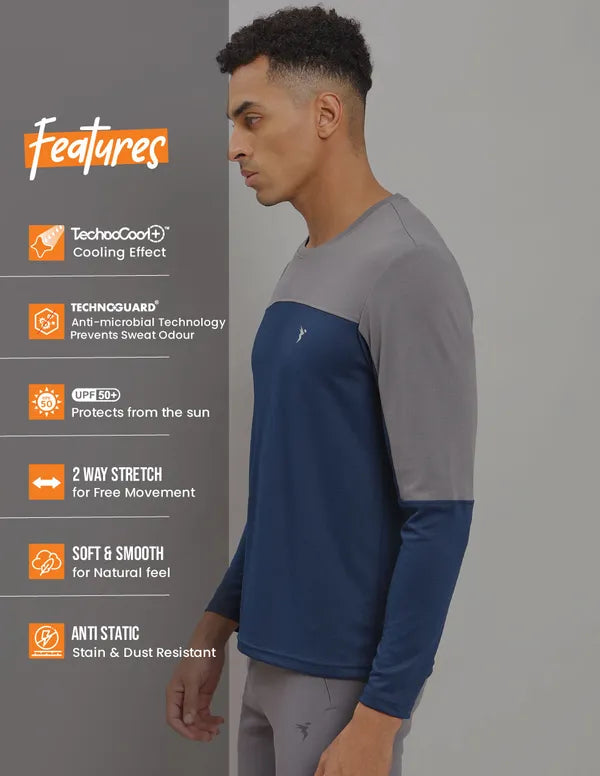 Men Colorblock Slim Fit Crew Neck T-shirt with TECHNO COOL+