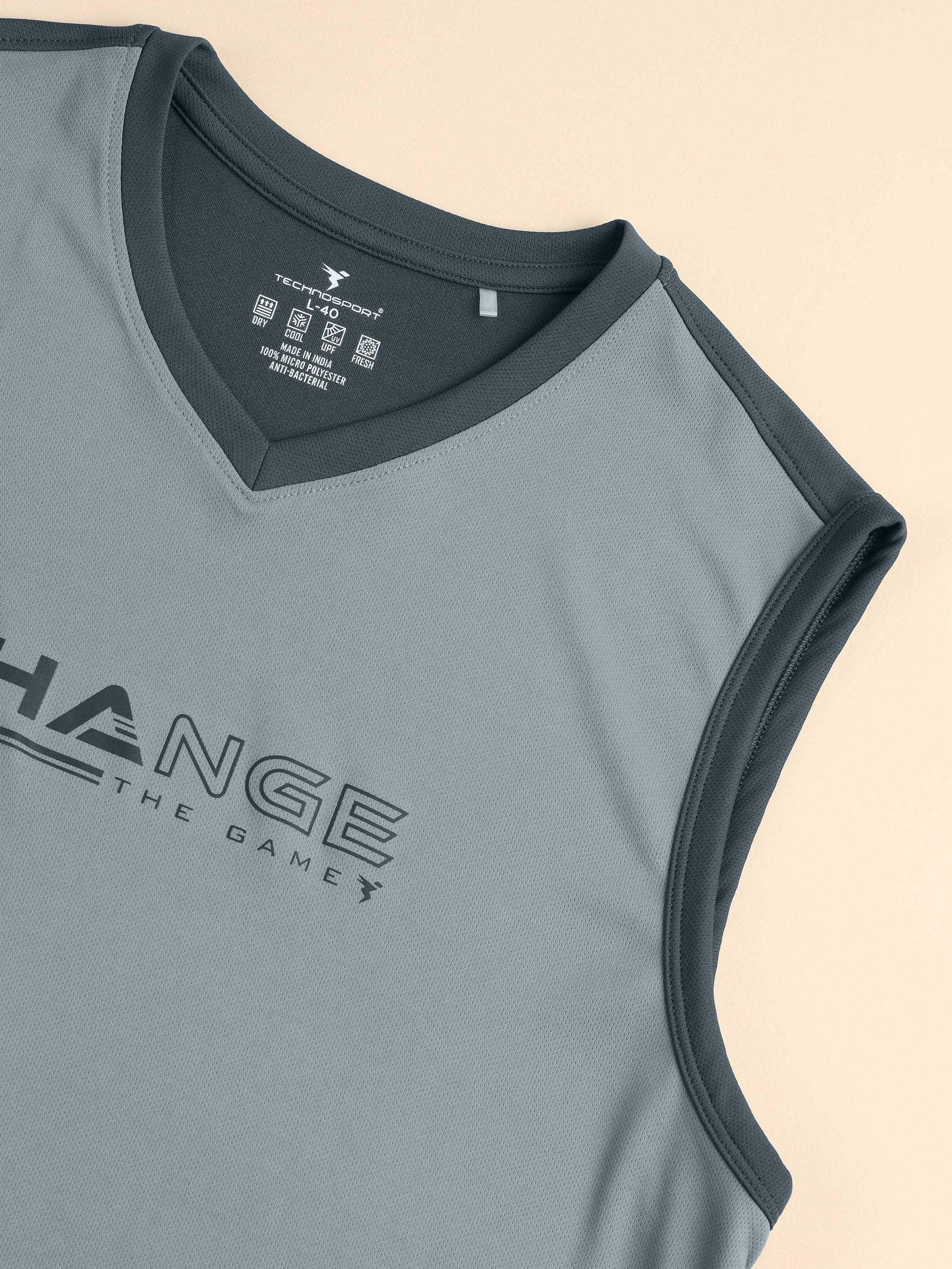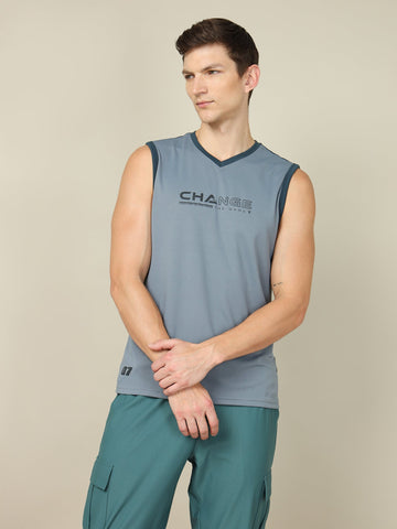 Men Solid Slim Fit V Neck Sleeveless T-shirt with TECHNO COOL +